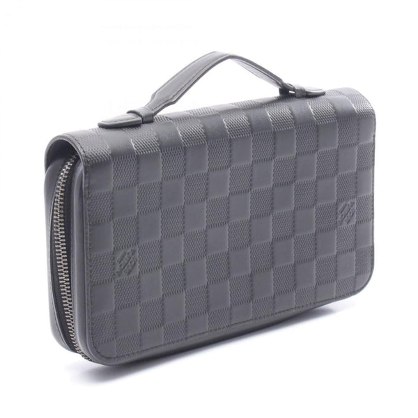 Louis Vuitton Zippy XL Damier Infini Onyx Round Long Wallet, Leather, Men\'s, Black, N61254