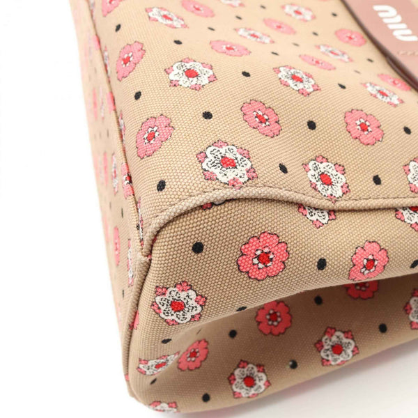 Miu Miu Miu CANAPA FIORI Canapa Fiori Handbag, Canvas, Women\'s, Beige, Brown, Multicolor, 5BA085 2DJ8 F0A2C