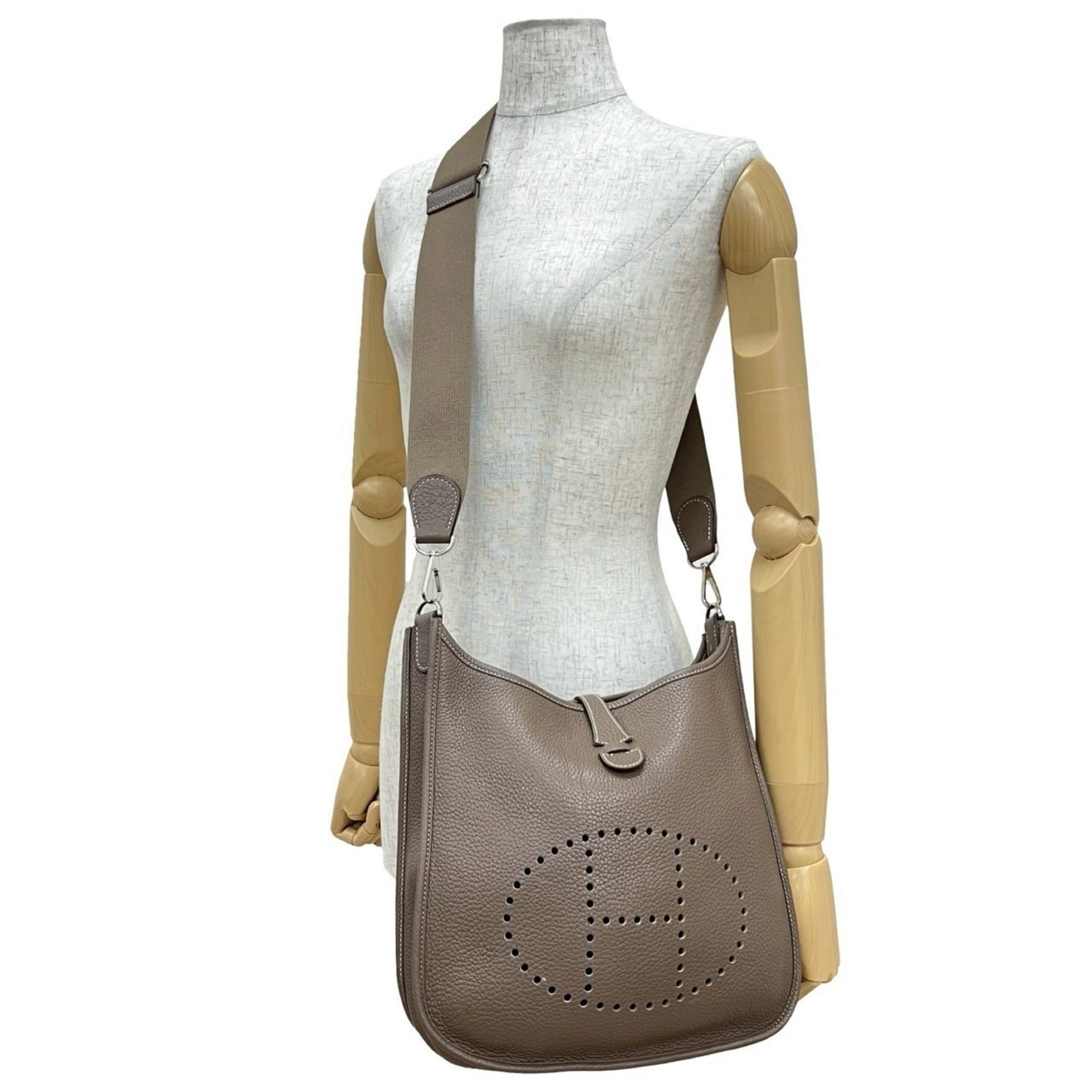 □N HERMES Evelyn 3 Taurillon Clemence Leather Shoulder Bag/Pochette/Sacoche/Etoupe 18104