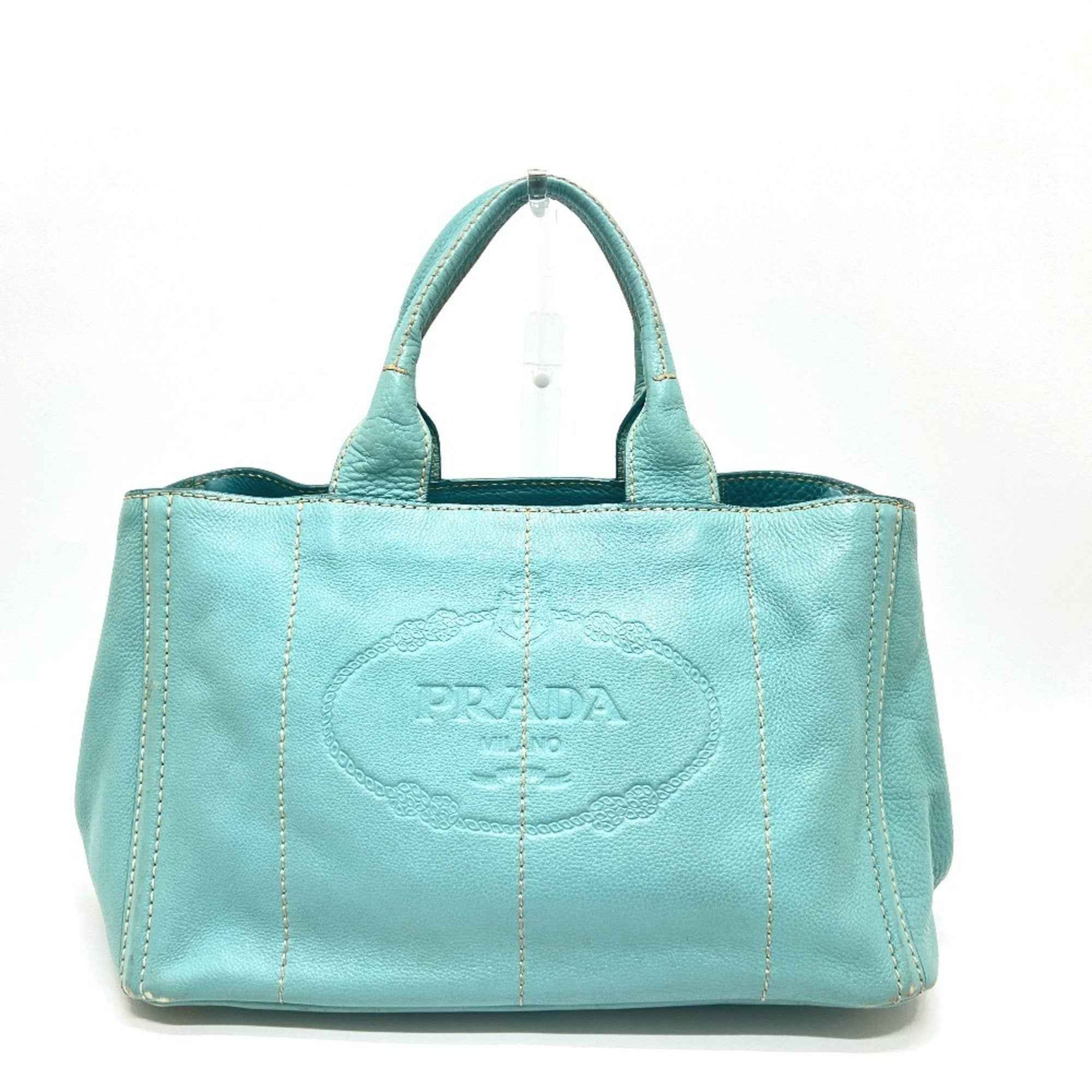 PRADA BN1872 Logo Canapa Handbag Large Capacity Tote Bag Leather Women\'s Blue