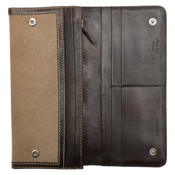 Prada Logo Jacquard Long Wallet Brown Canvas Leather Women\'s PRADA