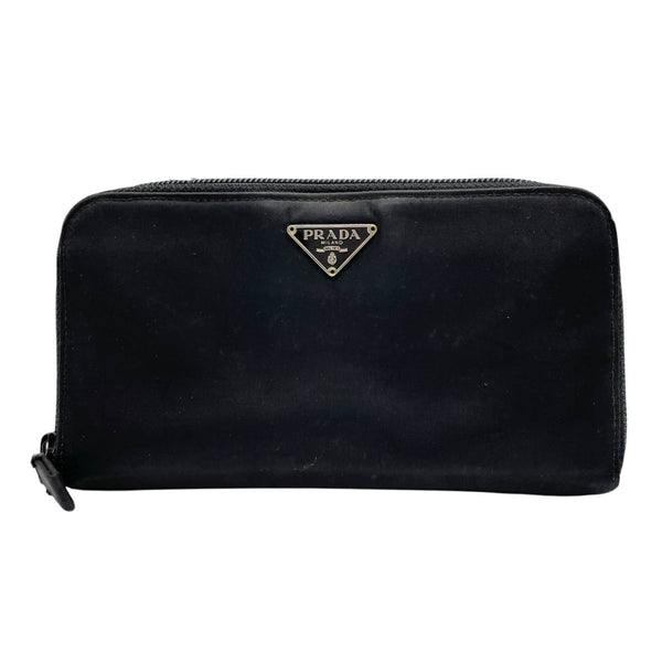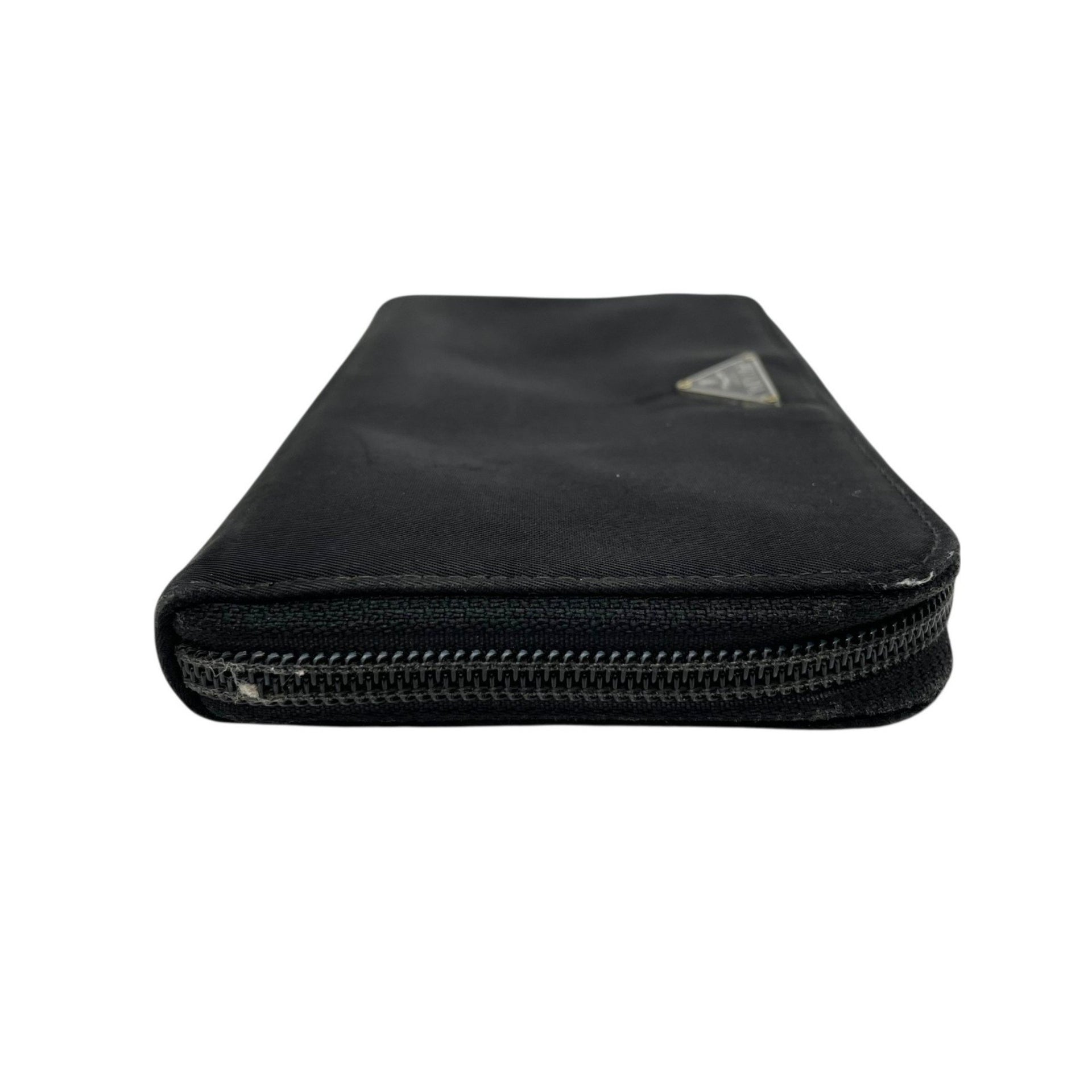 Prada long wallet, black, NERO nylon and leather, round zipper, triangle logo plate, silver hardware, men\'s women\'s, M1