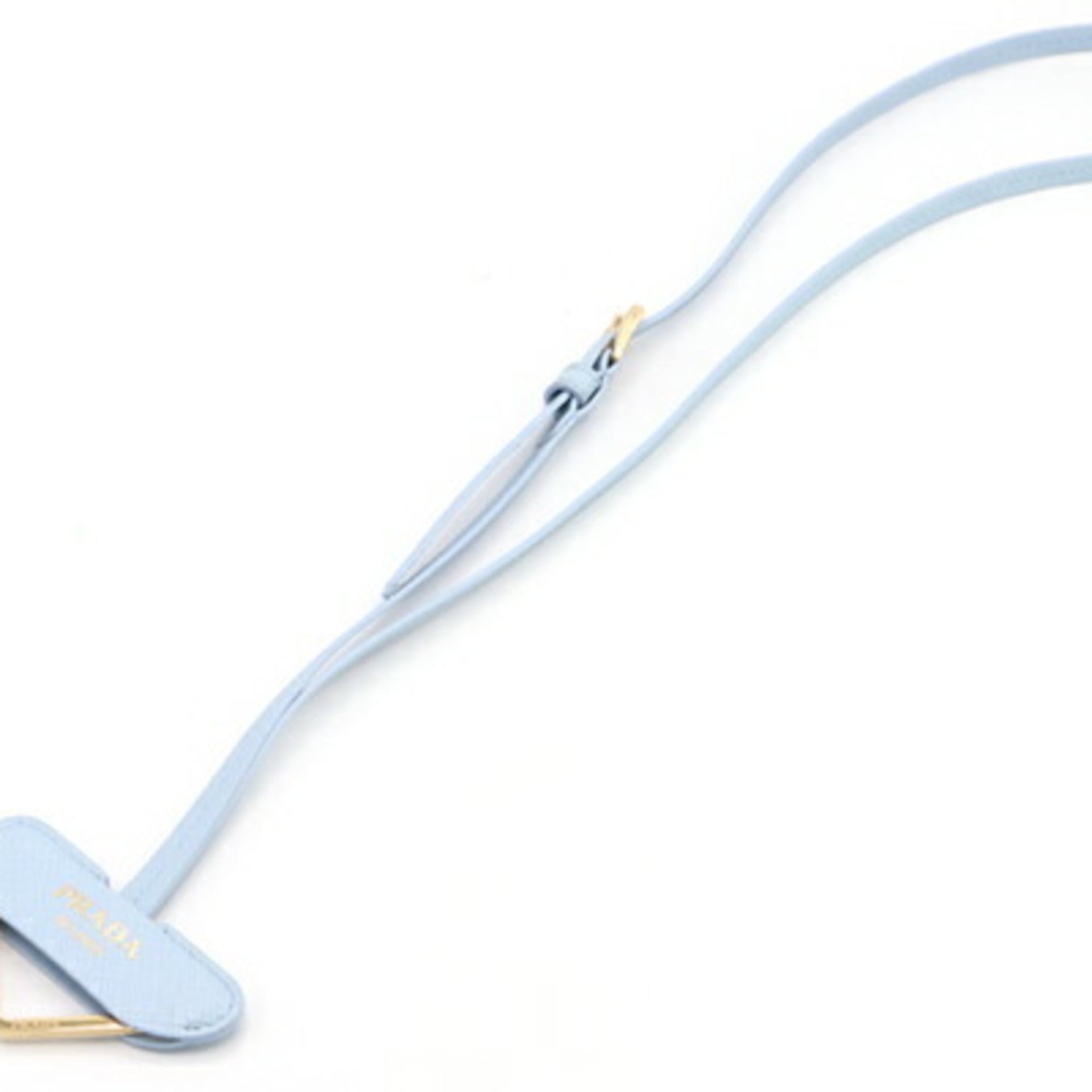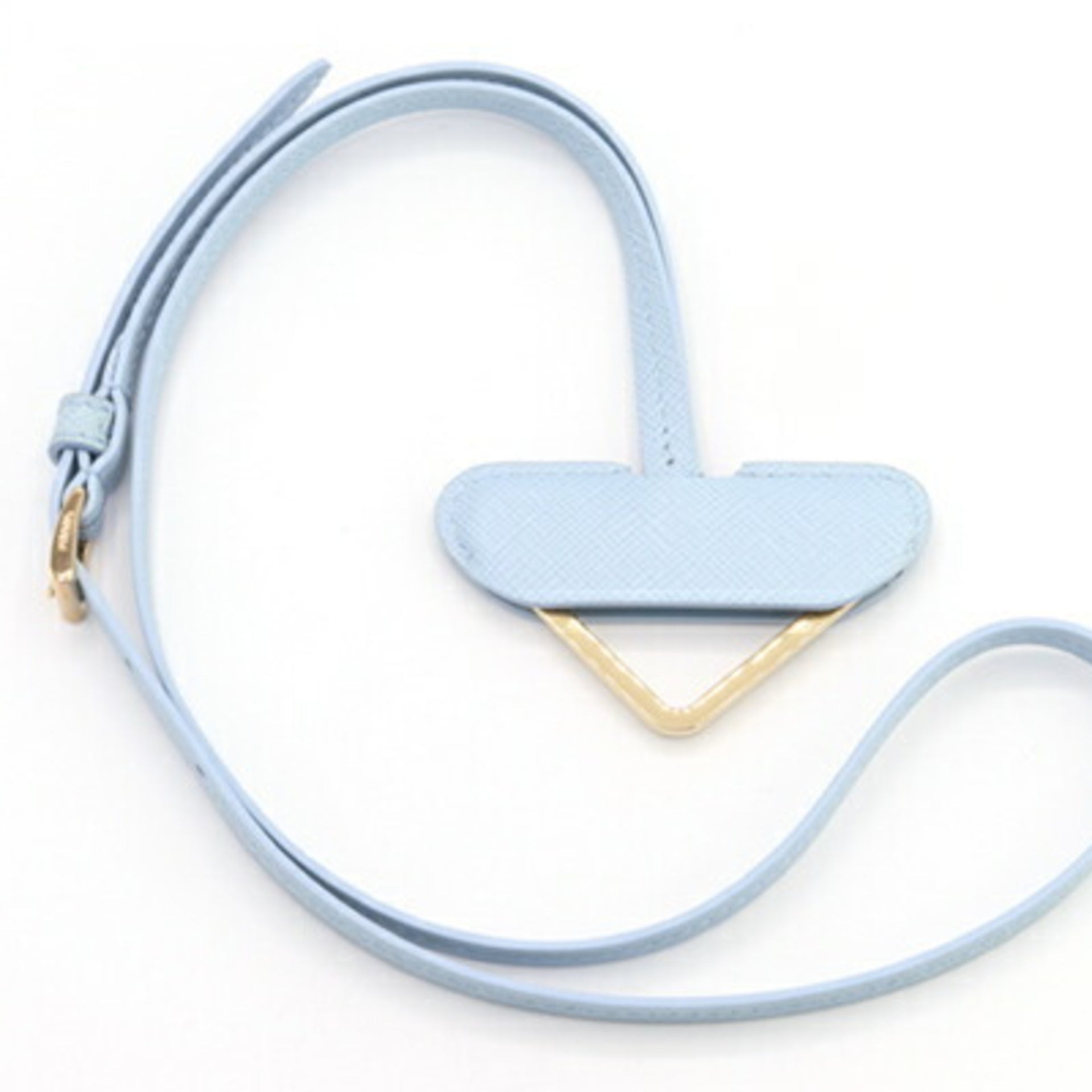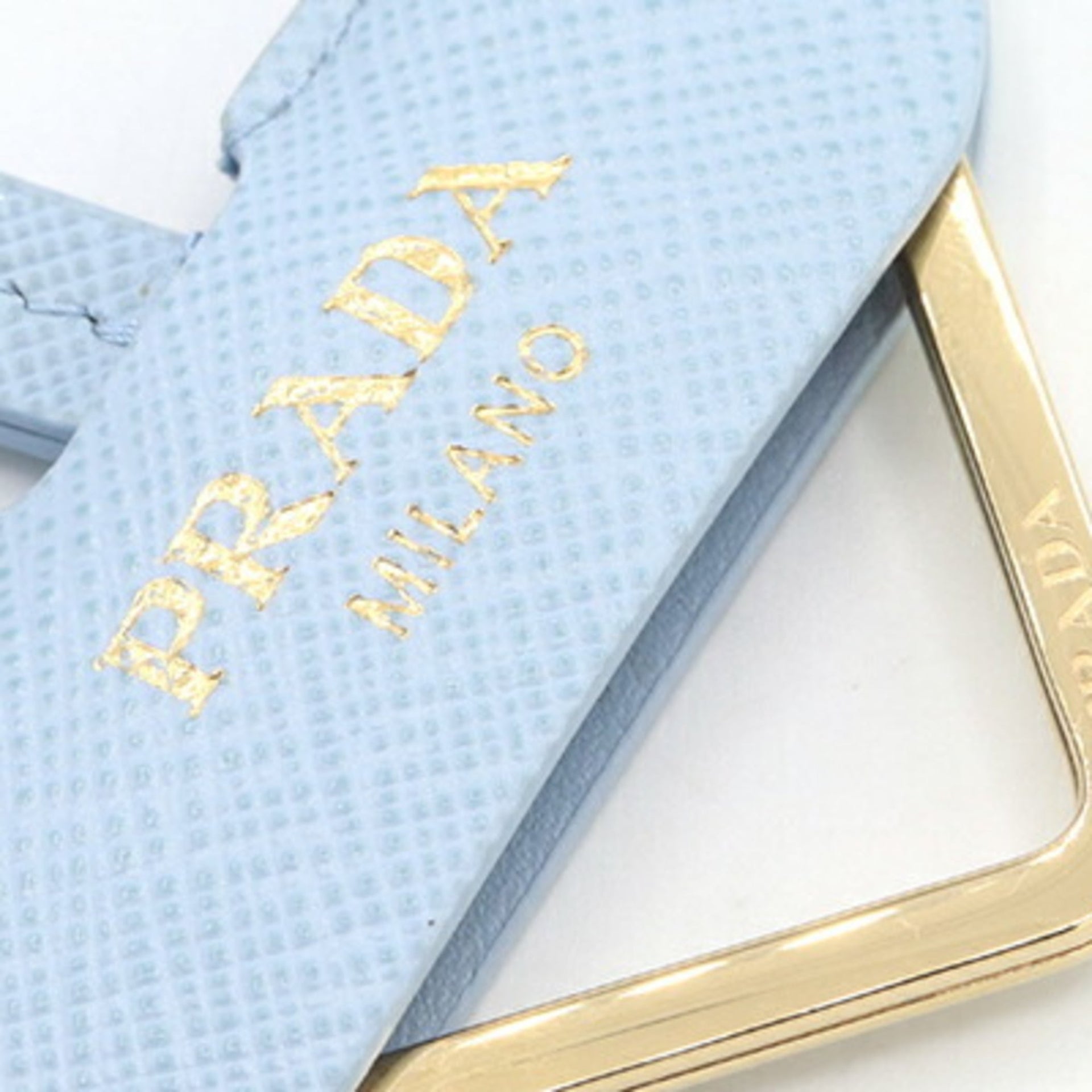 Prada Neck Strap 1PP184 Light Blue Leather New Unused Keychain Key Ring Bag Charm Women\'s Triangle PRADA
