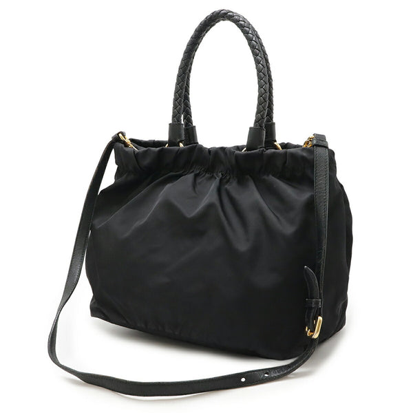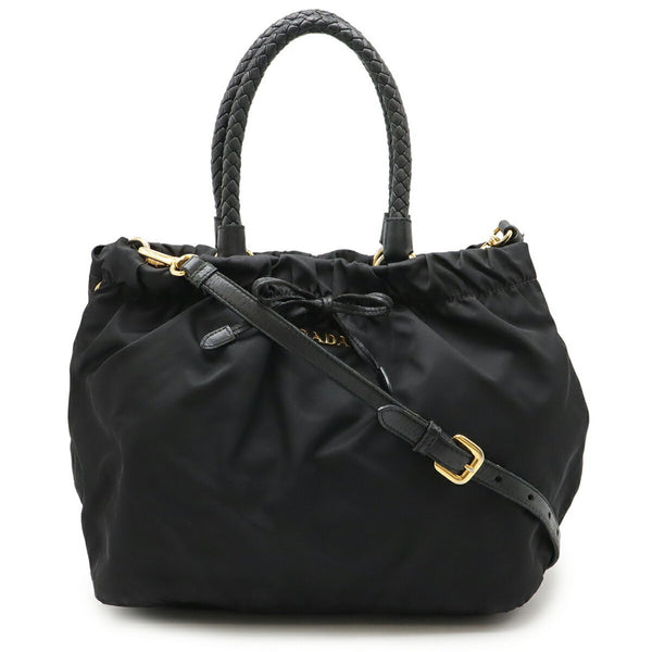 PRADA Prada Ribbon Gathered Handbag Tote Bag Handle Shoulder Nylon NERO Black BN1778