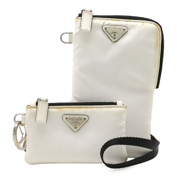 PRADA Prada Smartphone Case Shoulder Bag Pouch with Neck Strap, Nylon, White, 2TT091