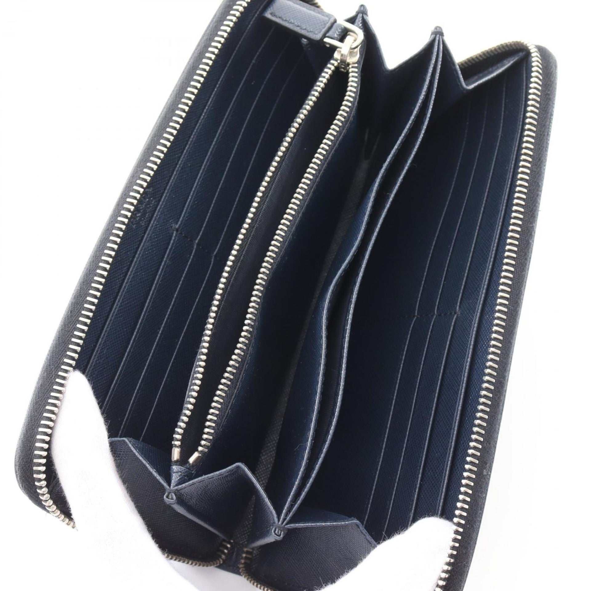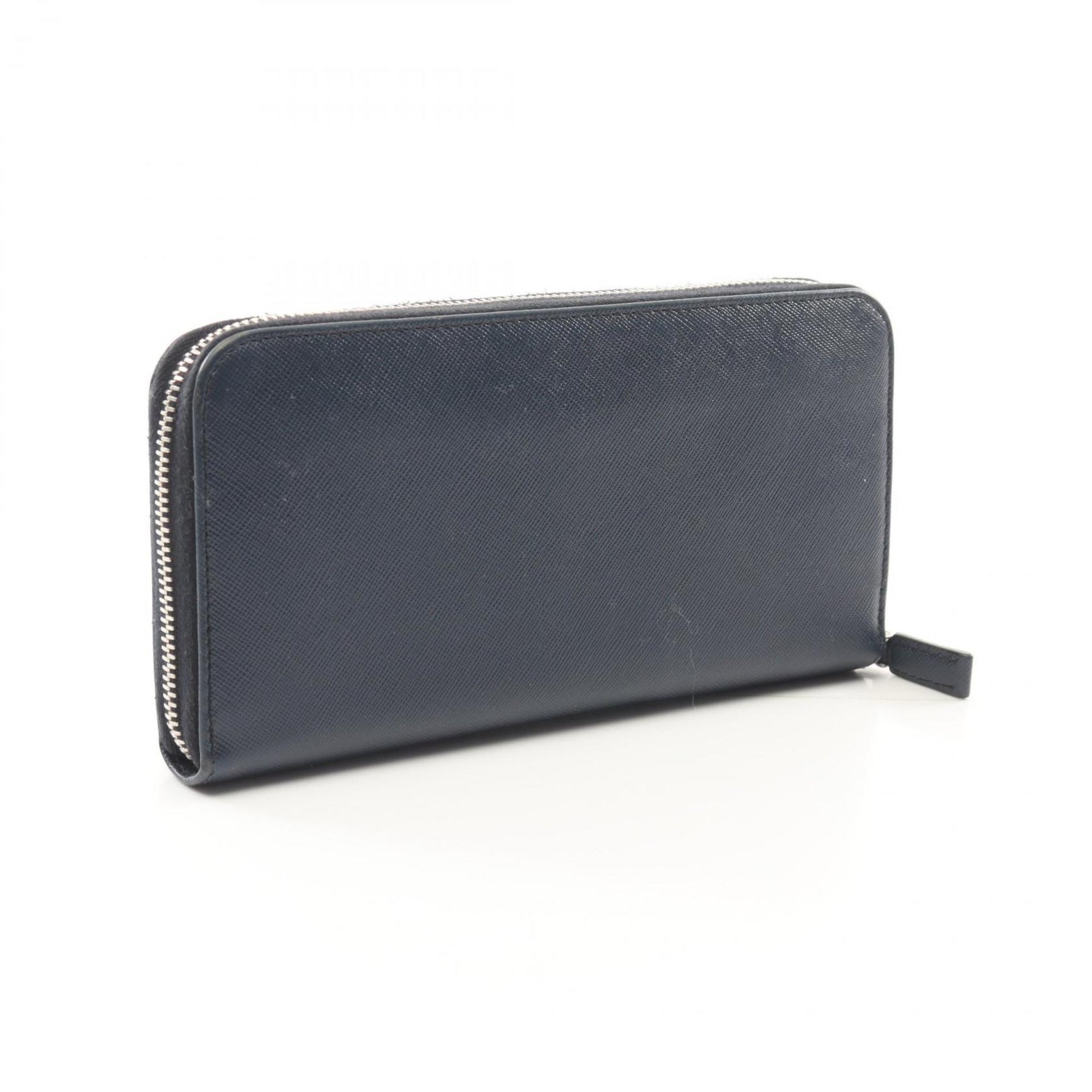 PRADA Round Long Wallet Saffiano Leather Women\'s Navy 1ML506