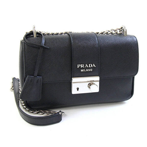 Prada Shoulder Bag 1BD298 Black Leather Saffiano Chain Crossbody for Women