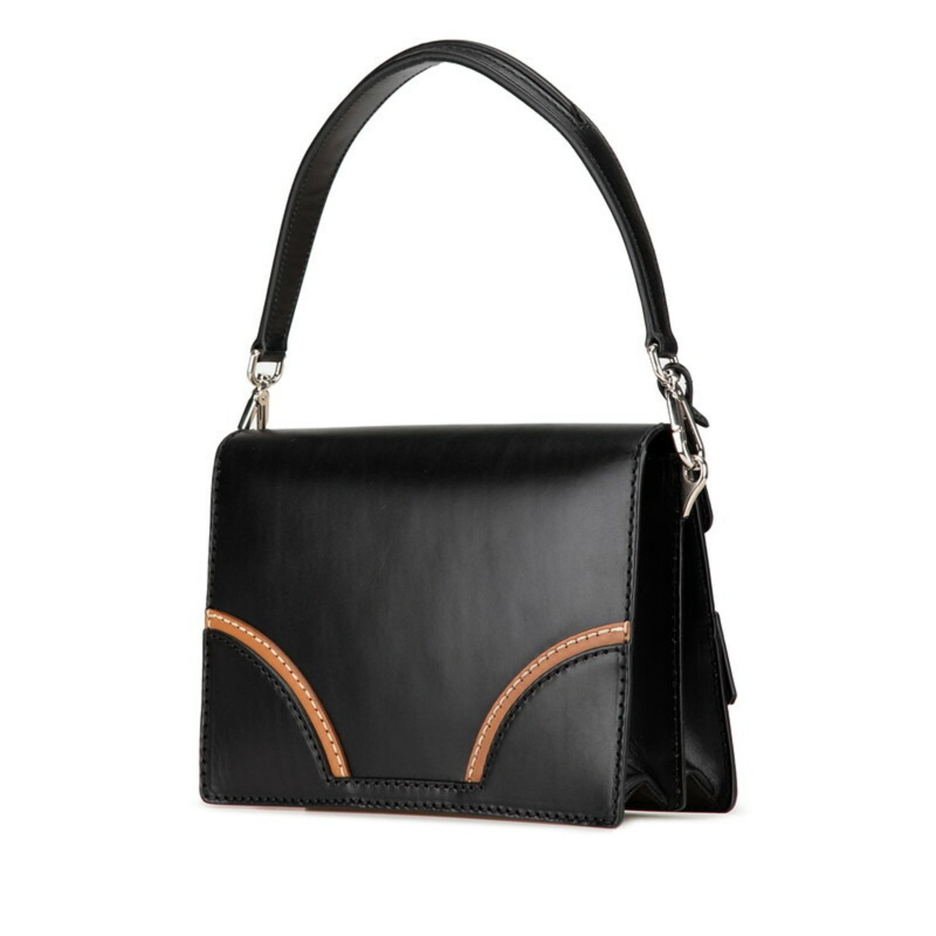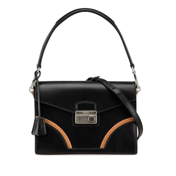 Prada Stitched Rim Handbag Shoulder Bag BR5138 Black Leather Women\'s PRADA