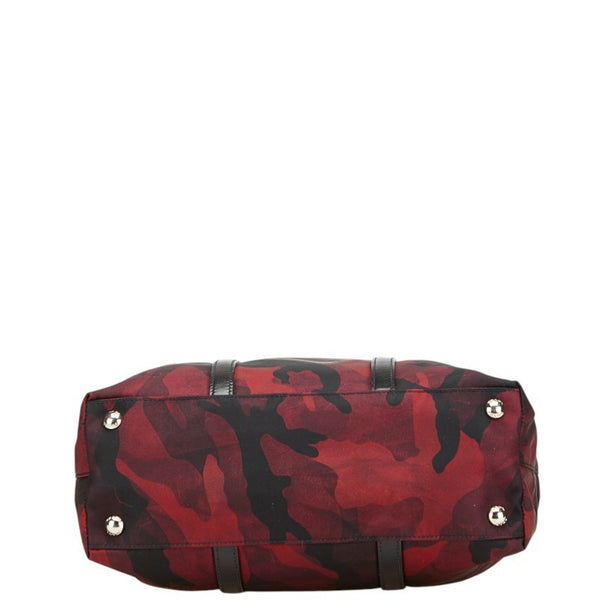 Prada Triangle Logo Camouflage Handbag/Shoulder Bag BN2791, 2-Way, Wine Red, Black, Nylon, Leather, Women\'s