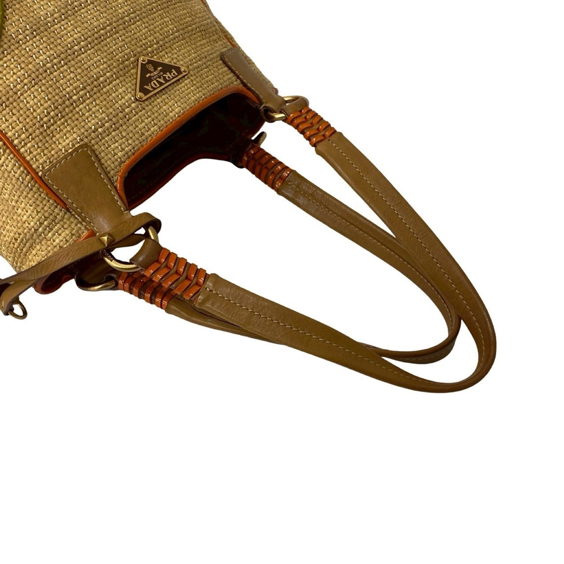 Prada Triangle Logo Hardware Raffia Leather Studs Tassel Handbag Mini Tote Bag Beige 16711