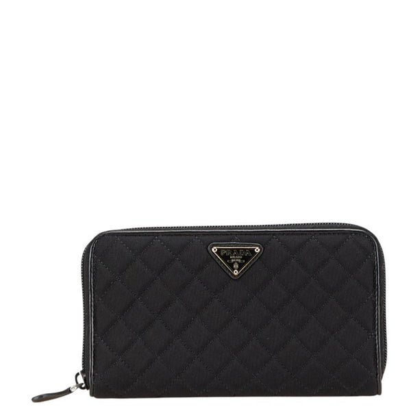 Prada Triangle Logo Plate Long Wallet Black Nylon Leather Women\'s PRADA