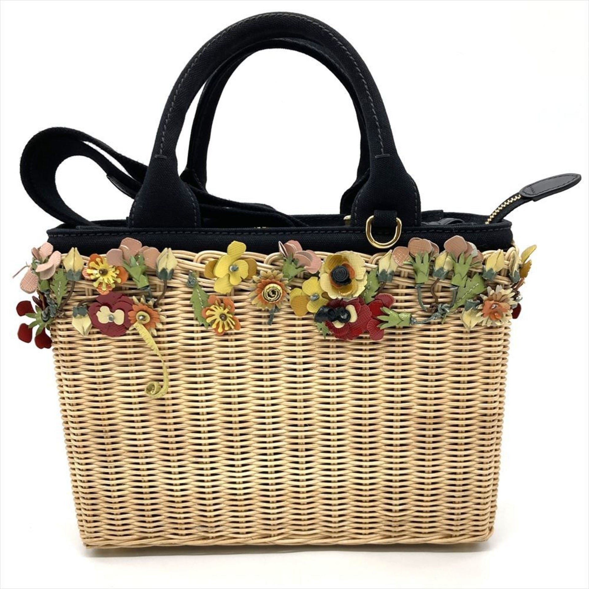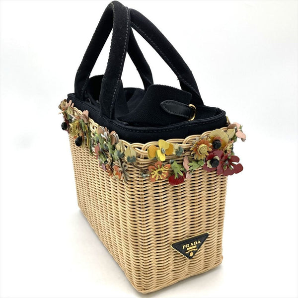 Prada Wicker Handbag, Rattan and Cotton, Beige, with Flowers, Women\'s