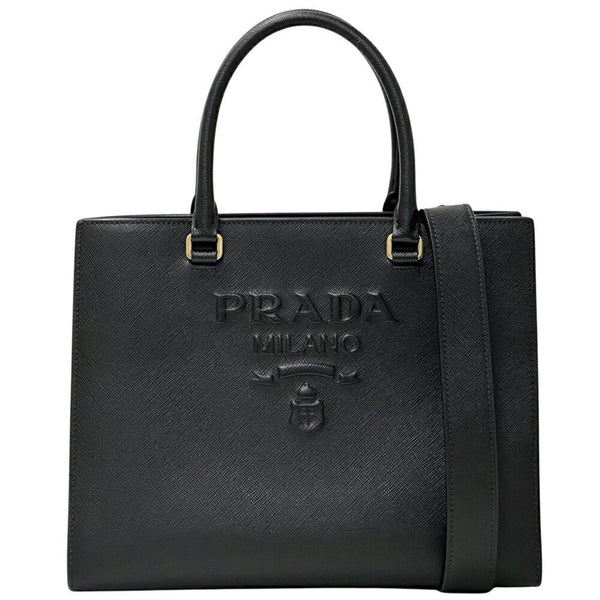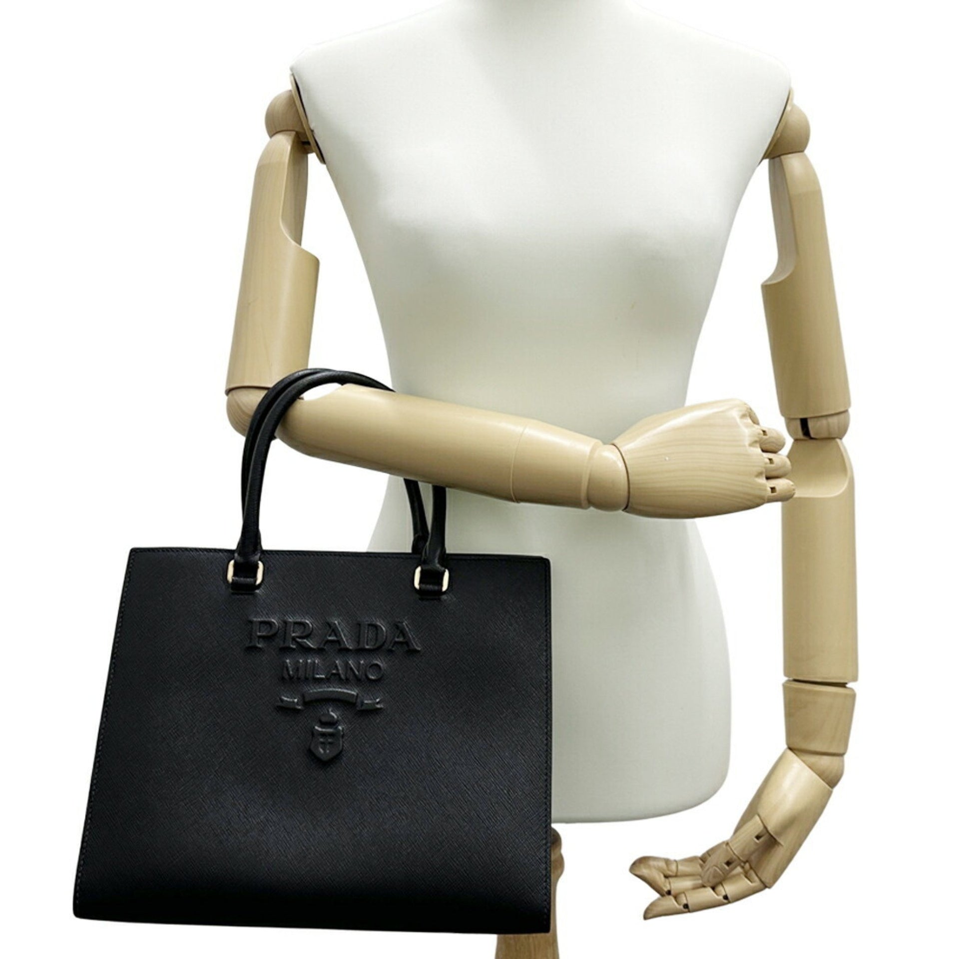 PRADA Women\'s Handbag Shoulder Bag 2way Saffiano Black Leather Triangle
