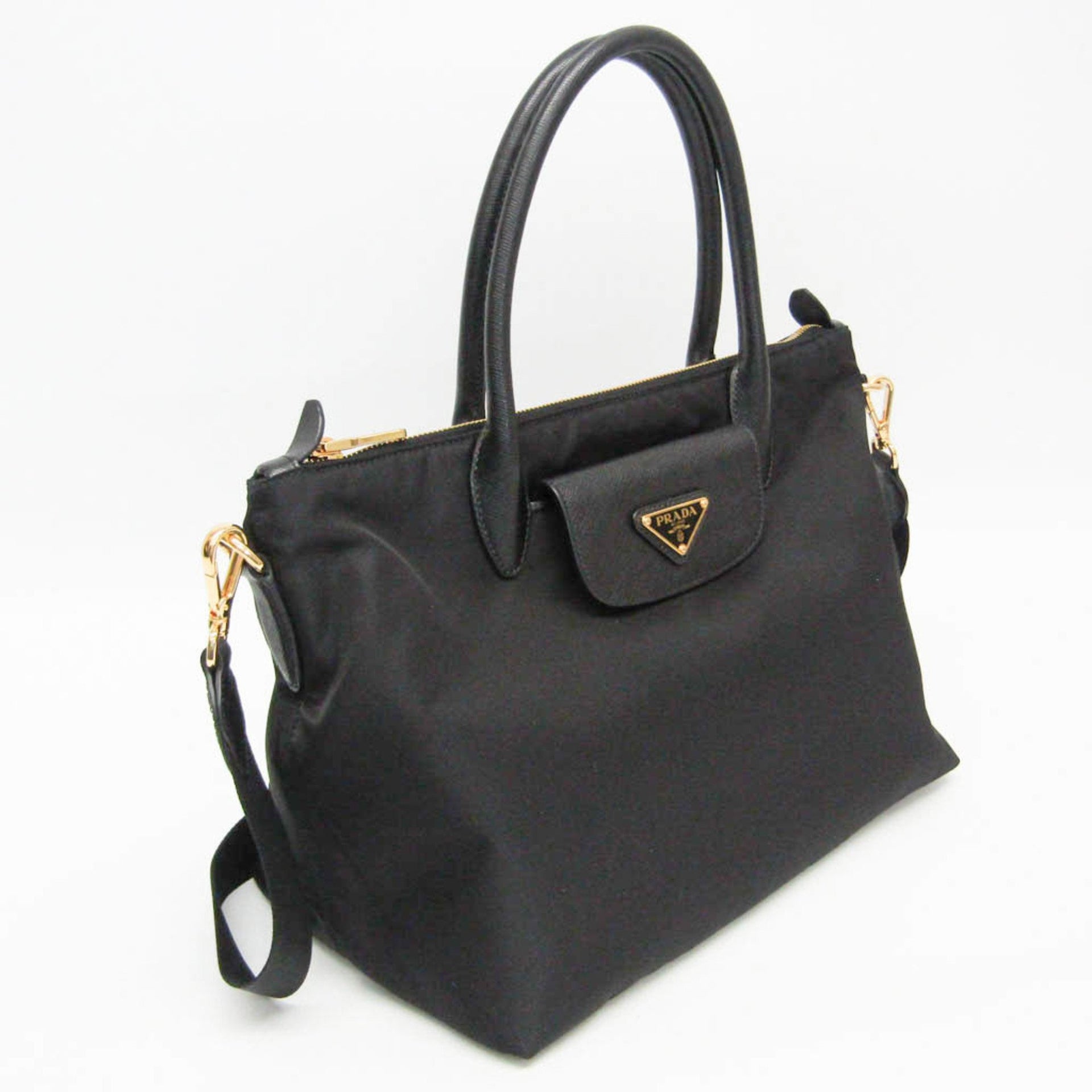Prada Women\'s Leather,Nylon Handbag,Shoulder Bag Black