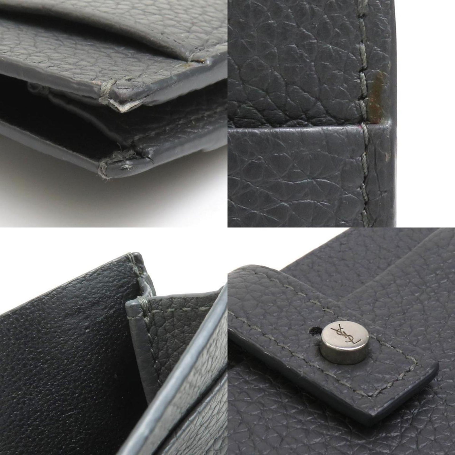 Saint Laurent SAINT LAURENT Business Card Holder/Card Case Leather Grey Men\'s Women\'s 56082a