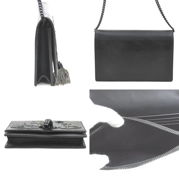 Saint Laurent SAINT LAURENT Wallet Chain Shoulder Bag Leather Metal Black Women\'s e60535a