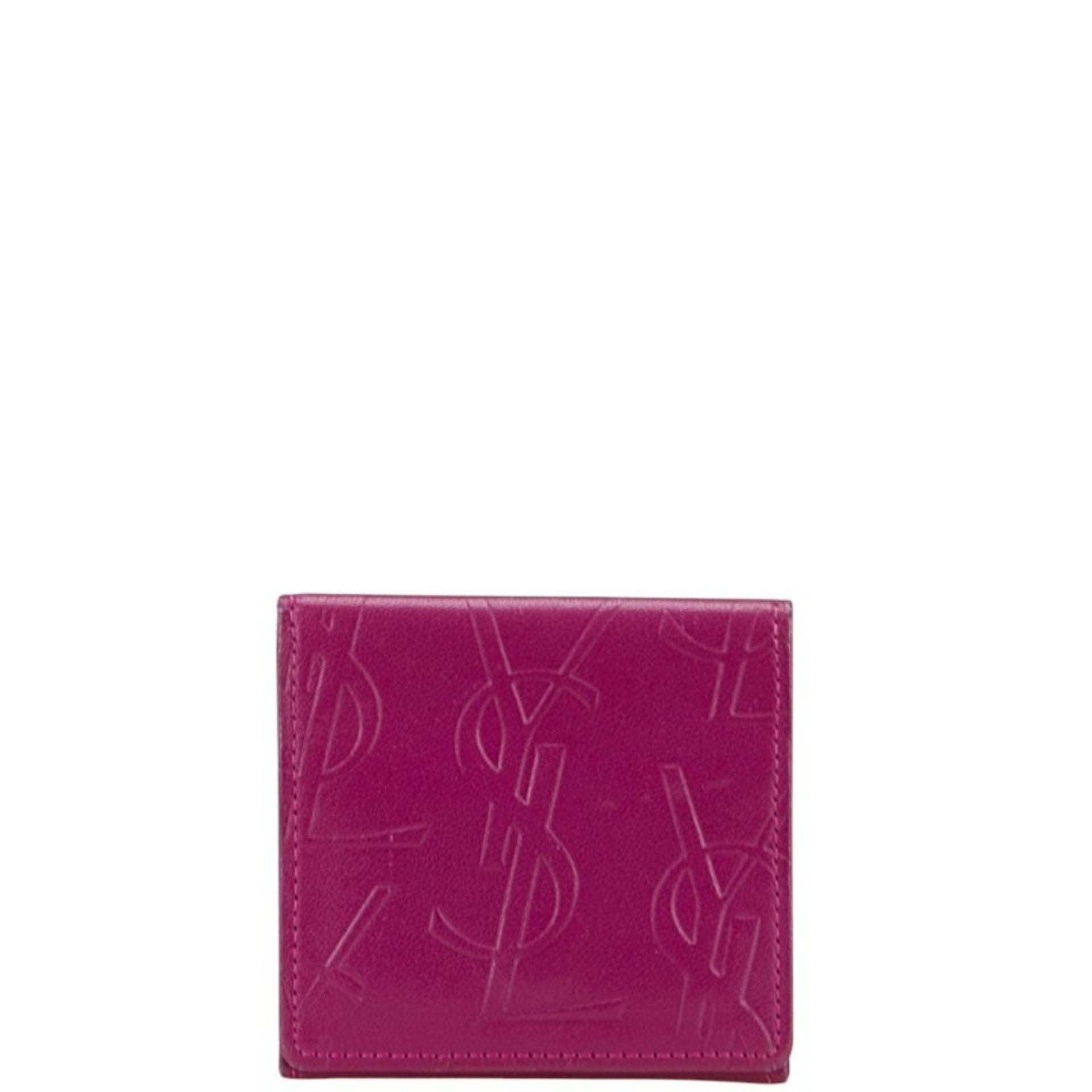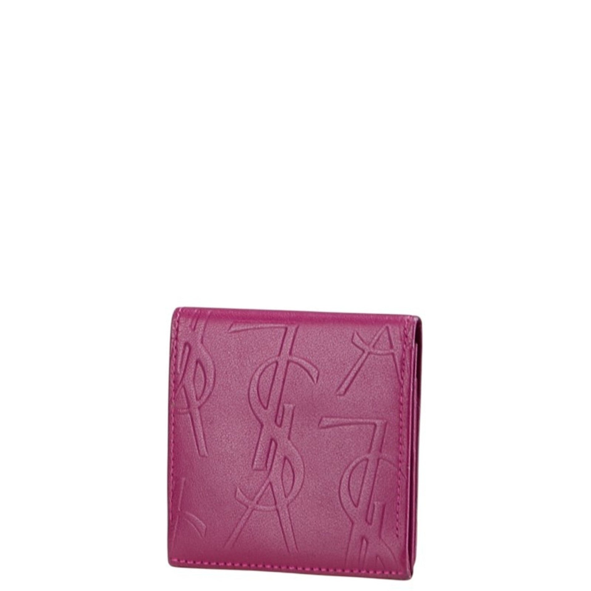Saint Laurent YSL logo wallet/coin case, purple leather, women\'s, SAINT LAURENT