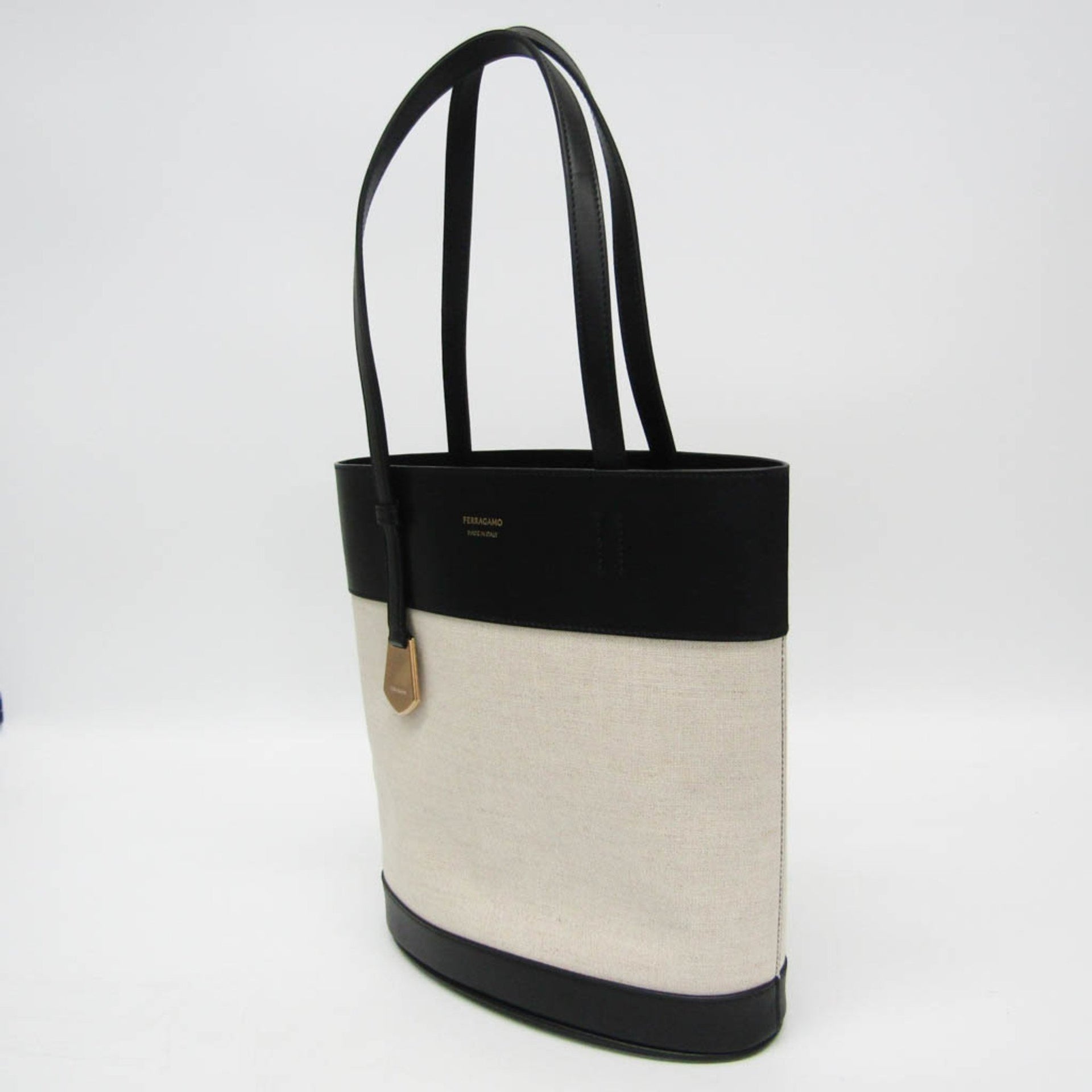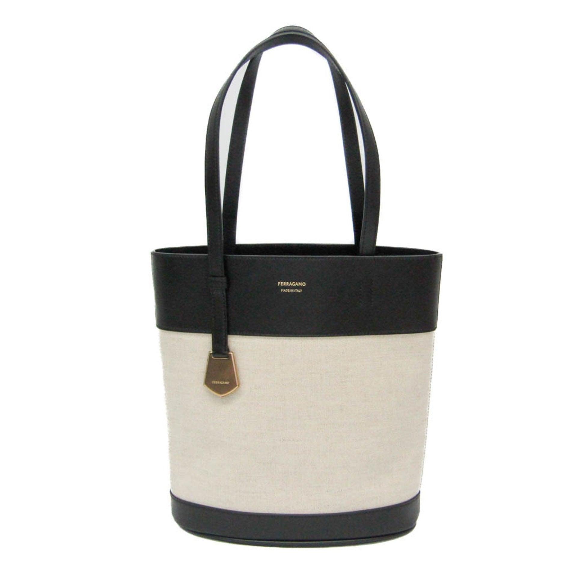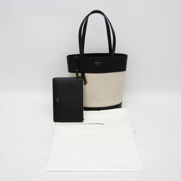 Salvatore Ferragamo Charming Tote Bag AU-21/7533 Women\'s Leather,Canvas Shoulder Bag,Tote Bag Black,Light Brown