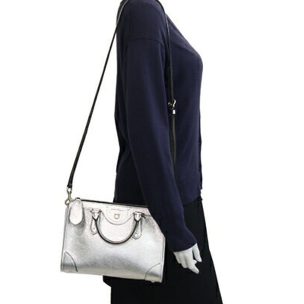 Salvatore Ferragamo Gancini 21 0388 Silver Leather Shoulder Bag for Women