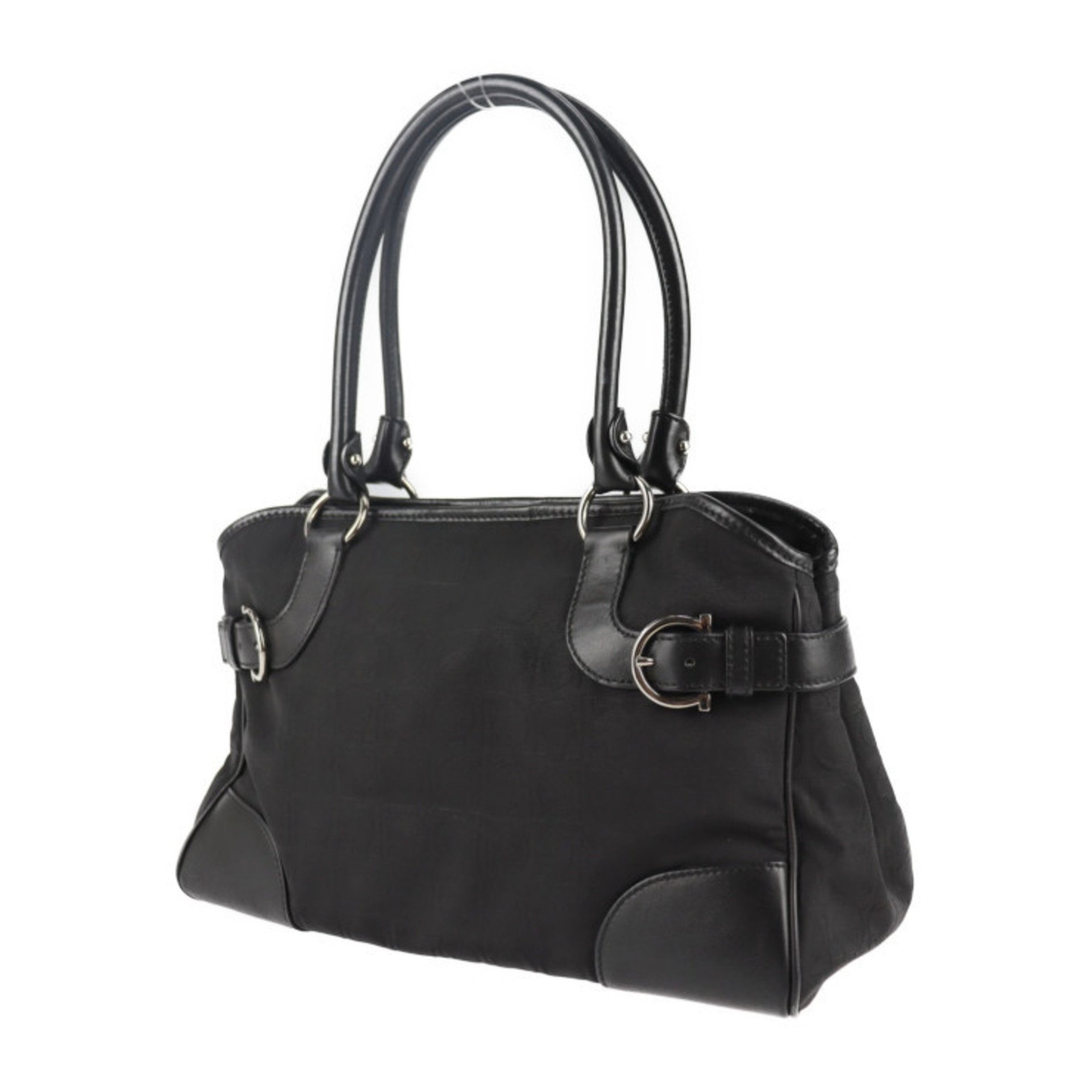 Salvatore Ferragamo Gancini Handbag 21 4911 Canvas Leather Black Shoulder Bag R2116093007230
