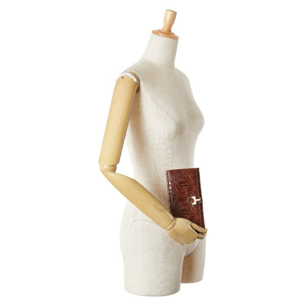 Salvatore Ferragamo Gancini long wallet in brown leather for women.
