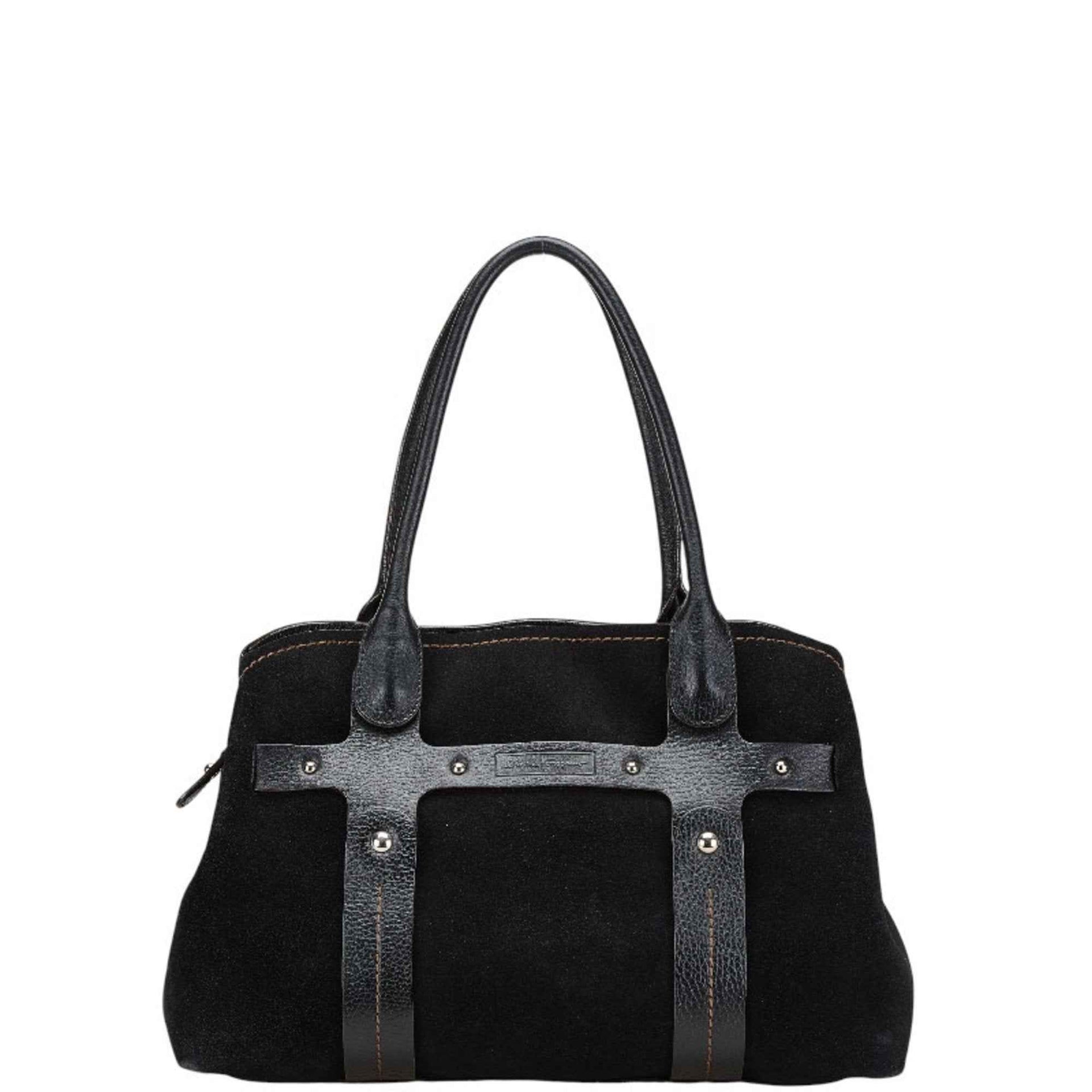 Salvatore Ferragamo handbag EE-21 7987 in black suede and leather for women.
