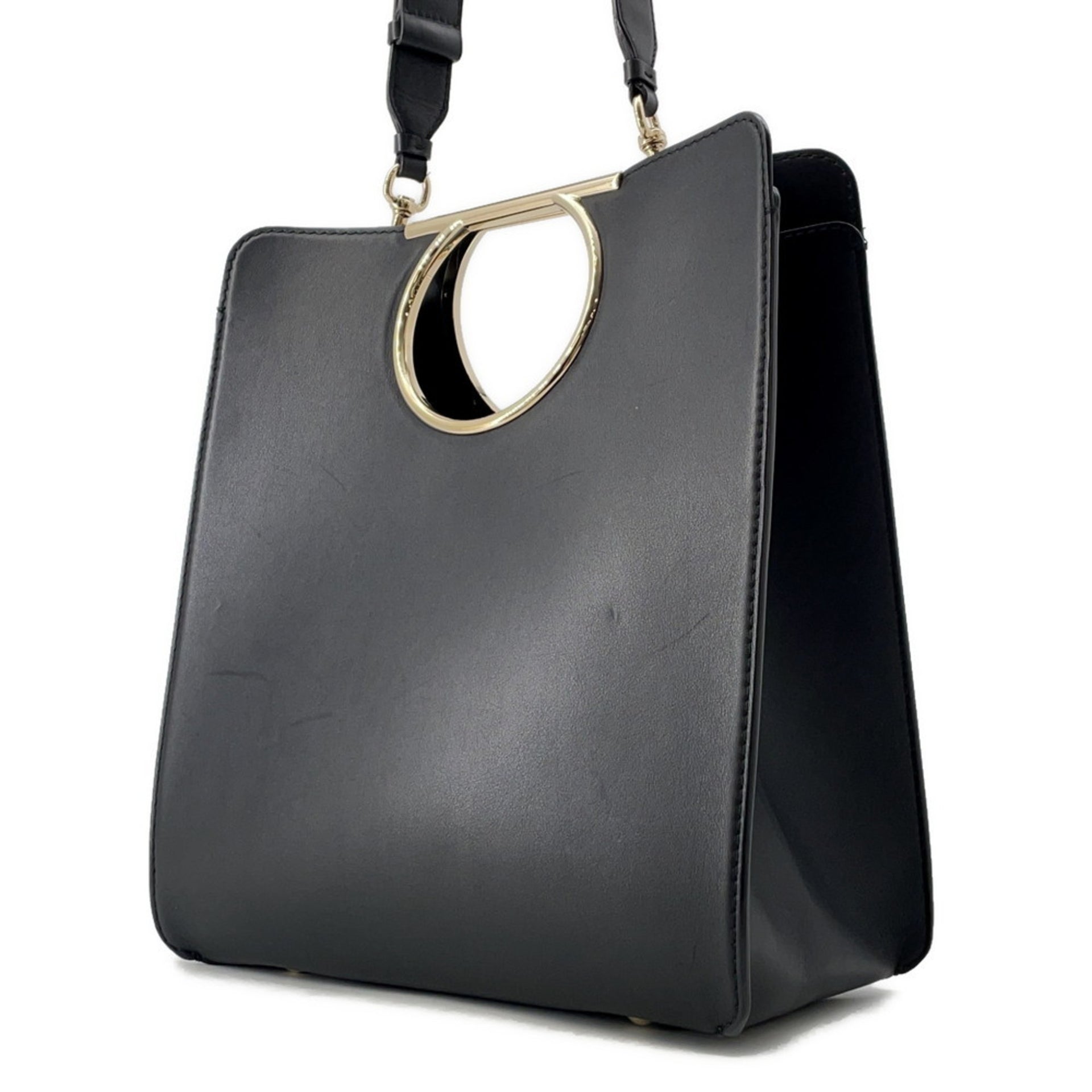 Salvatore Ferragamo Leather Handbag, 2-Way Shoulder Bag, Black, Gancini