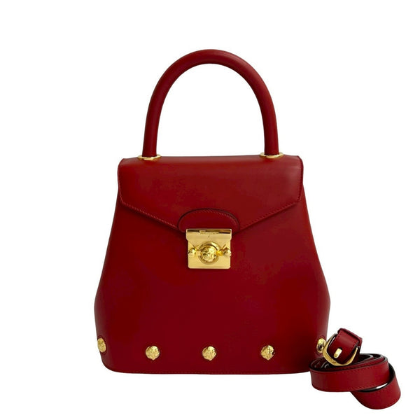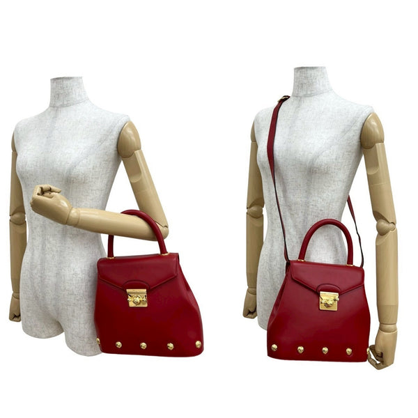 Salvatore Ferragamo logo pumps with metal hardware, leather 2-way handbag/shoulder bag, red, 26601