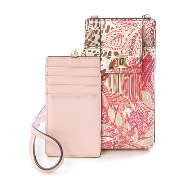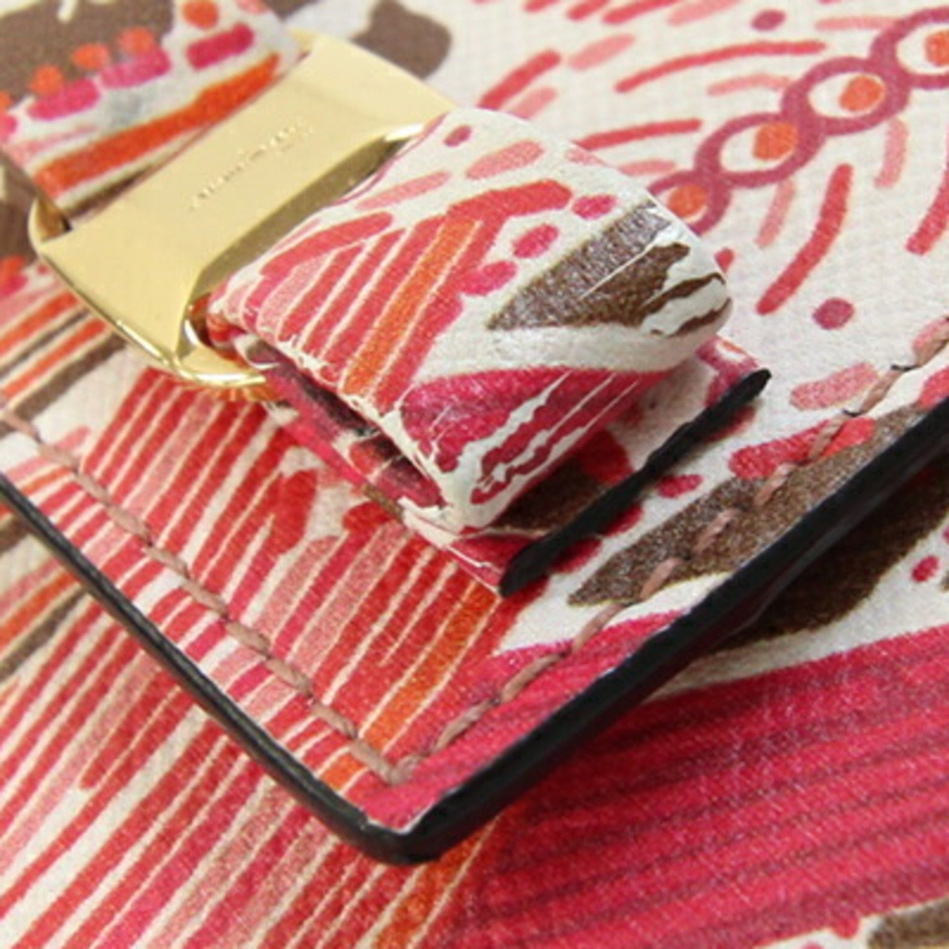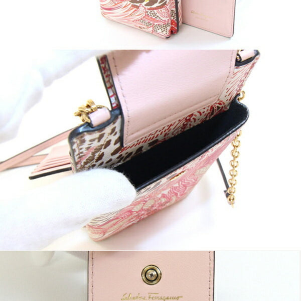 Salvatore Ferragamo Phone Case Vara 22 0381 Ivory Pink Leather Chain Pochette Shoulder Ribbon Card Women\'s