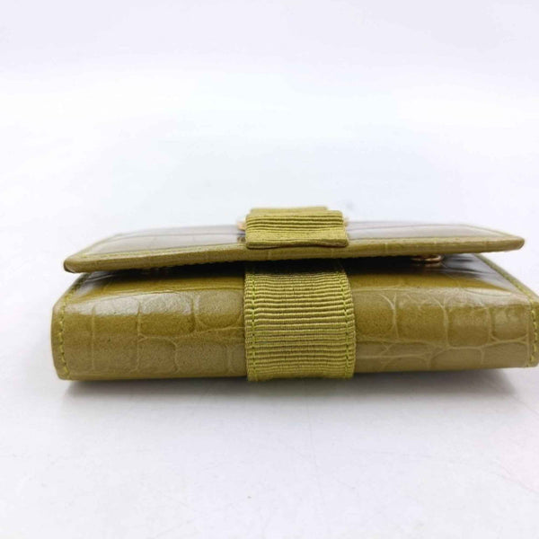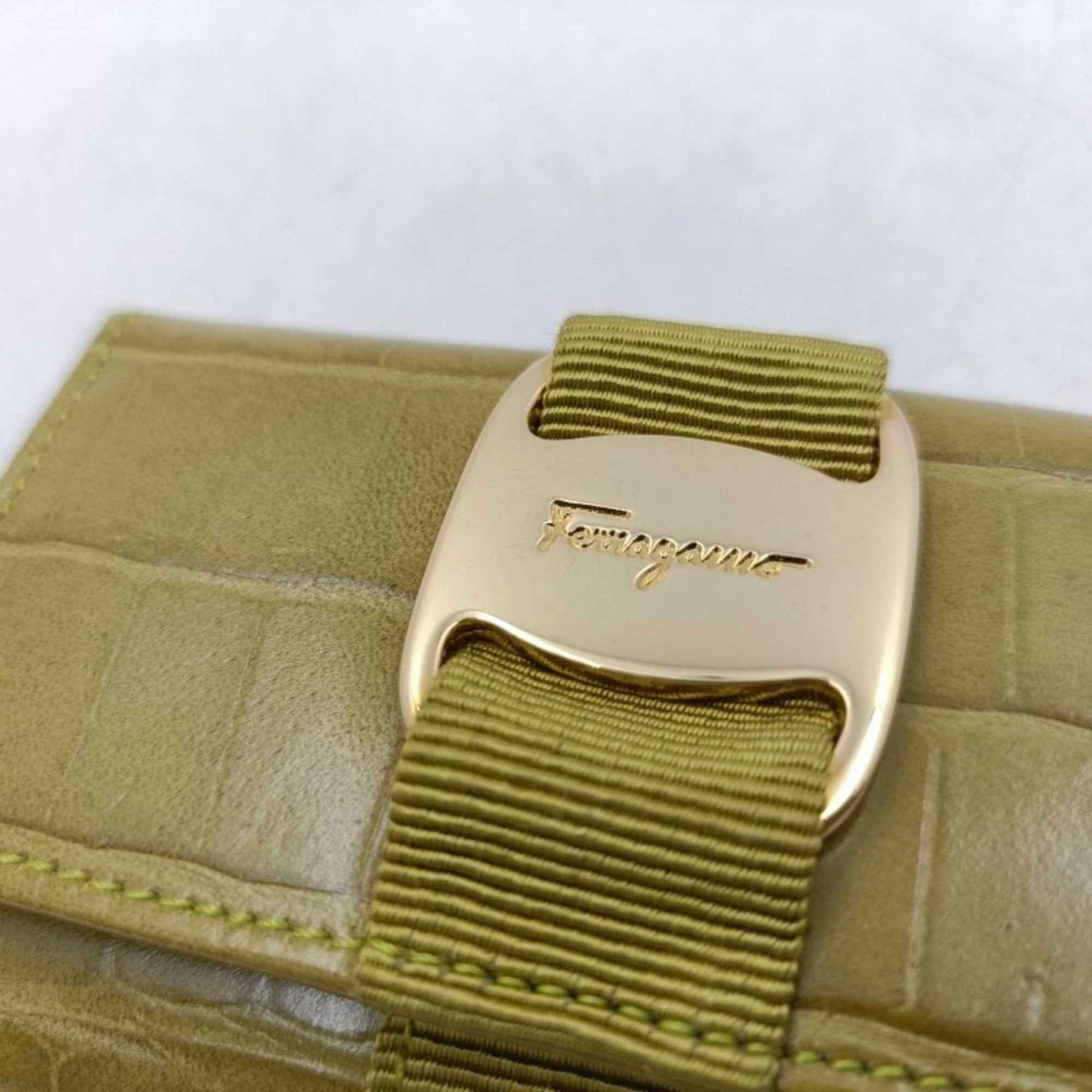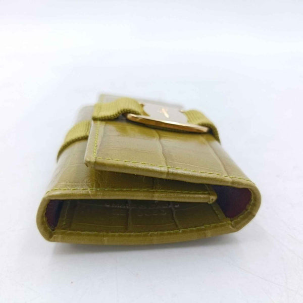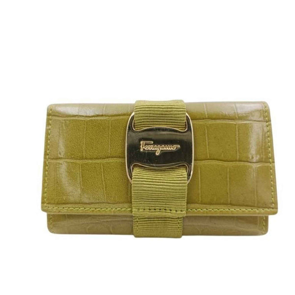 Salvatore Ferragamo Vara 22 3056 Key Case, Khaki Embossed Leather, Women\'s, 6-Row Ring