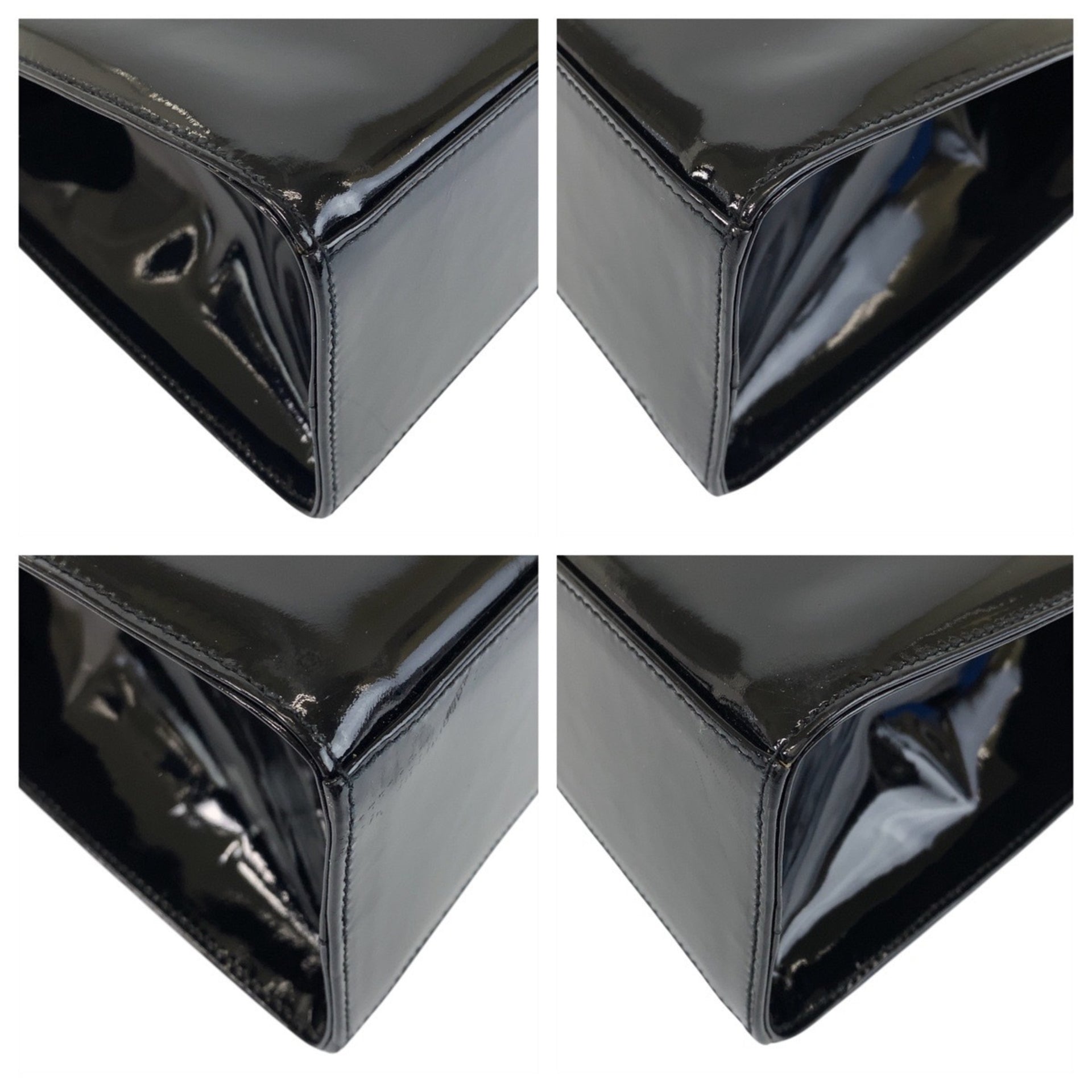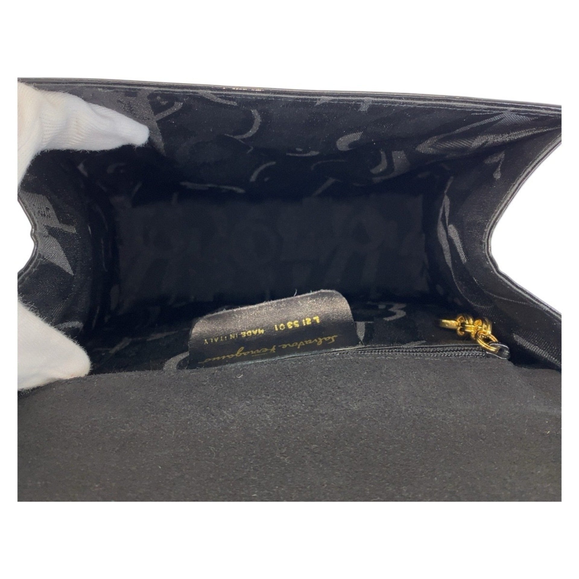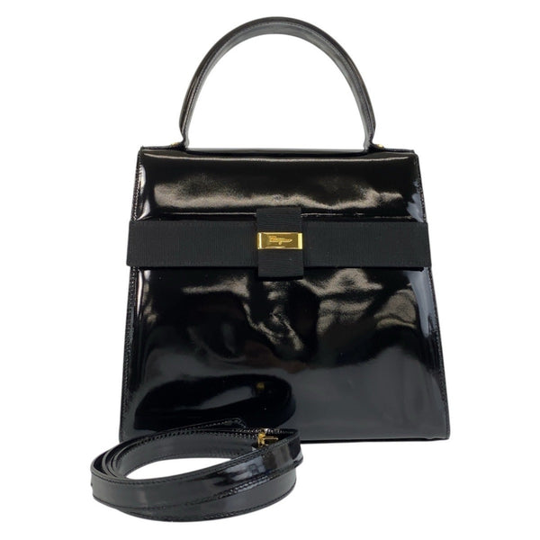 Salvatore Ferragamo Vara Ribbon Black Gold Hardware Patent Leather Handbag Shoulder Bag 2way Women\'s