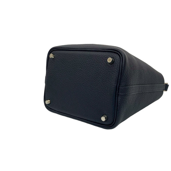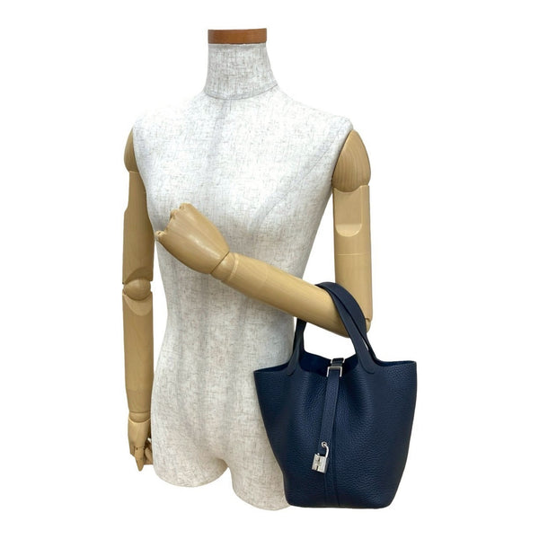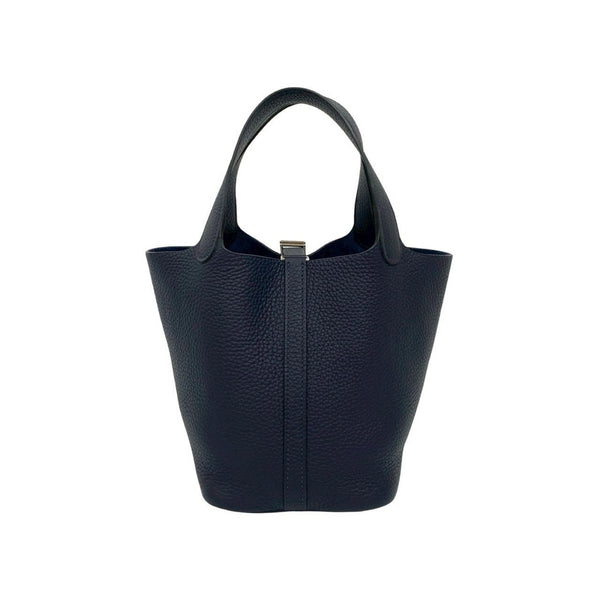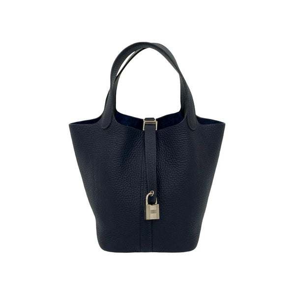 T-stamped HERMES Picotin Lock PM Taurillon Clemence Leather Handbag/Tote Bag, Navy Blue, 05285
