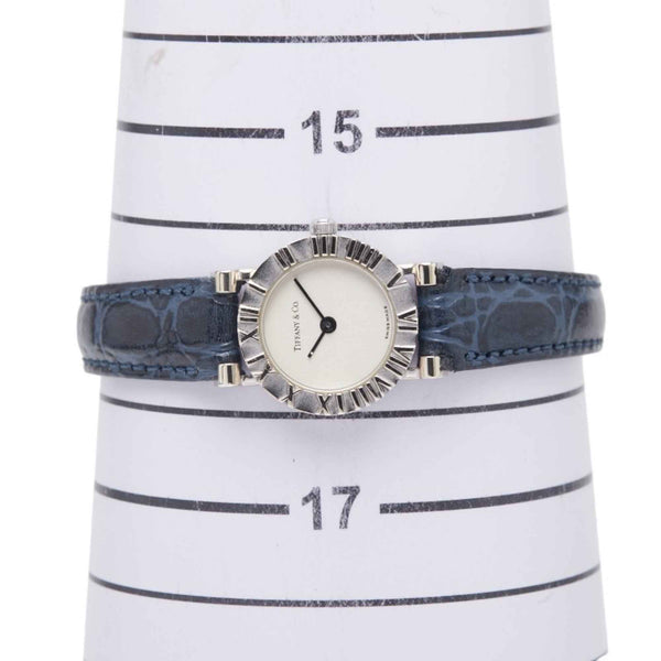 Tiffany & Co. Atlas Watch D286753, Women\'s Quartz with Silver Dial, Leather Strap, and Stainless Steel.