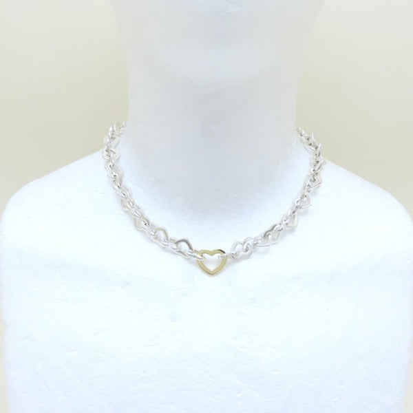 TIFFANY & Co. Tiffany Heart Link Necklace in 925 Sterling Silver and 18K Yellow Gold, Women\'s, 294341