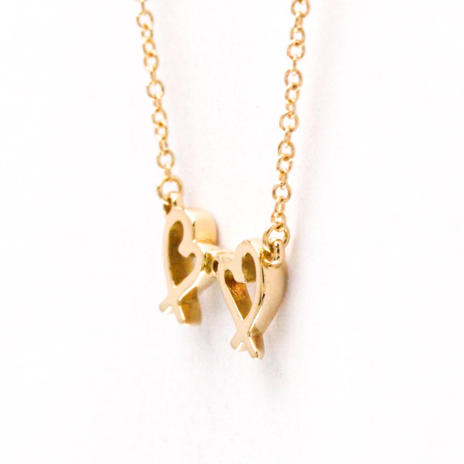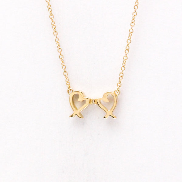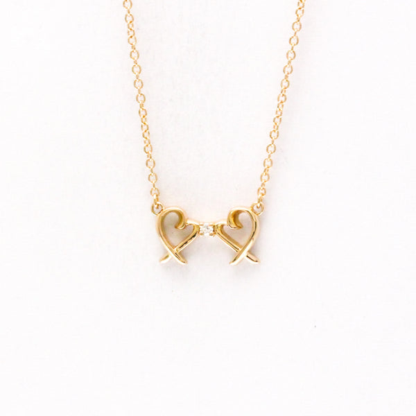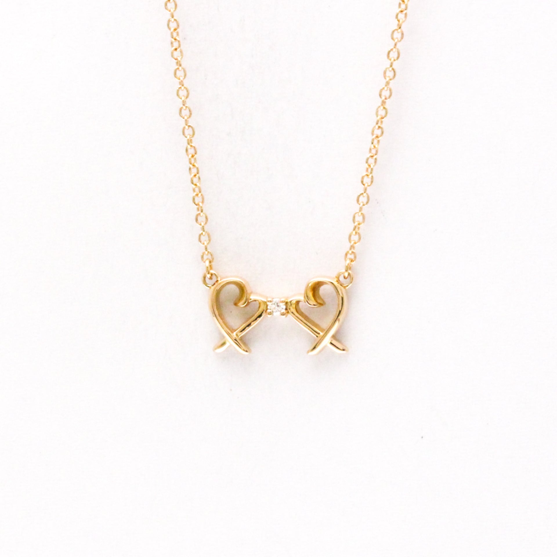 Tiffany Double Loving Heart Necklace With 1 Diamond Pink Gold (18K) Diamond Women,Men Fashion Pendant Necklace (Pink Gold)