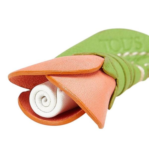 Tod\'s Flower Motif Keychain in Green, Pink, and White Leather for Women