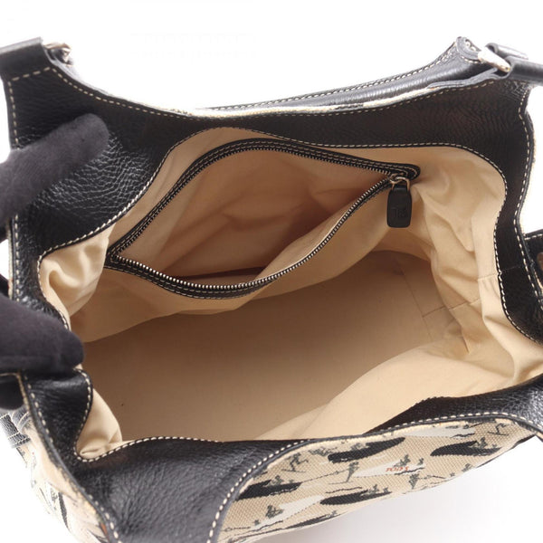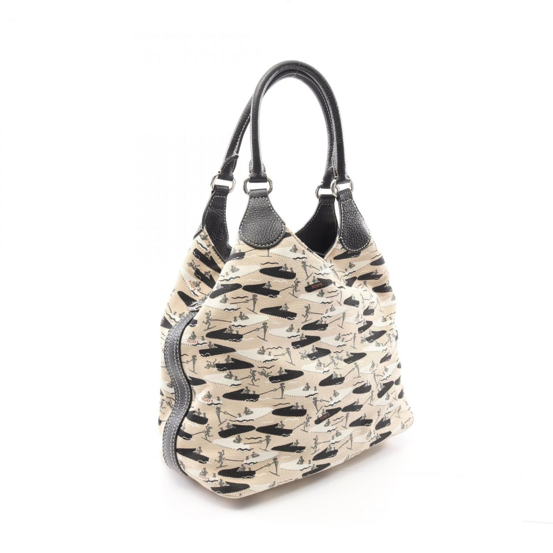 Tod\'s Handbag Canvas Leather Women\'s Beige Black