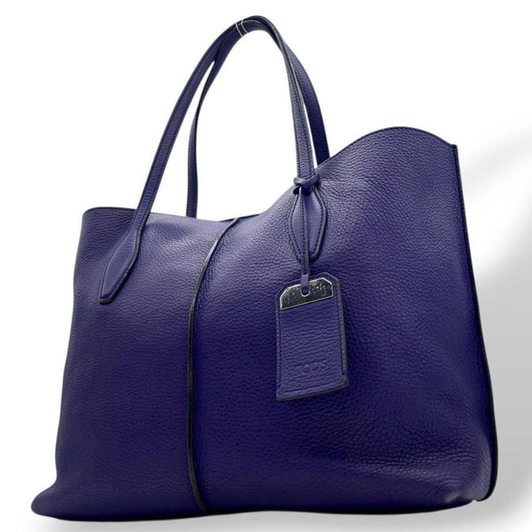 Tod\'s Purple Leather Tote Bag, Grained Leather, One-Shoulder Logo Charm, U2