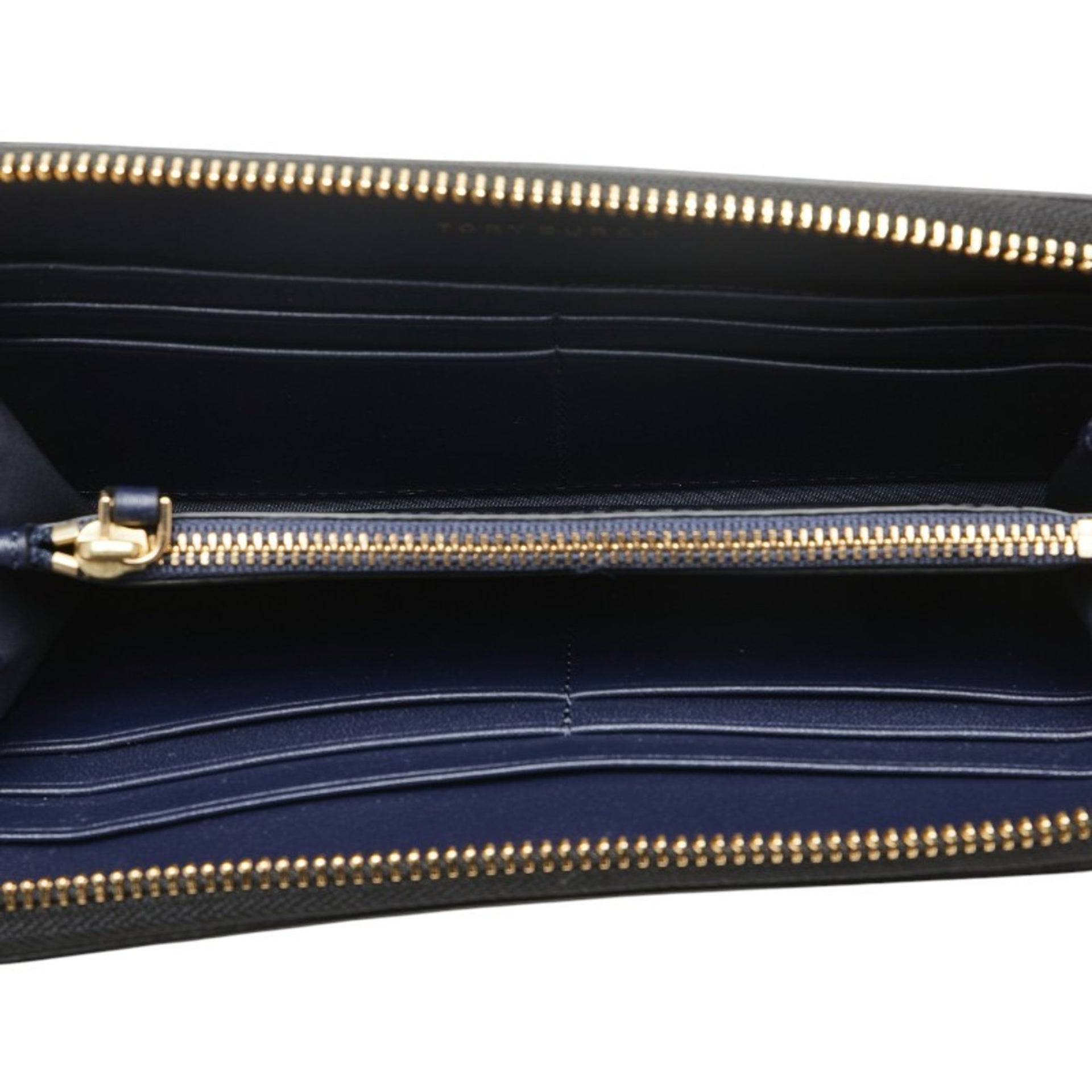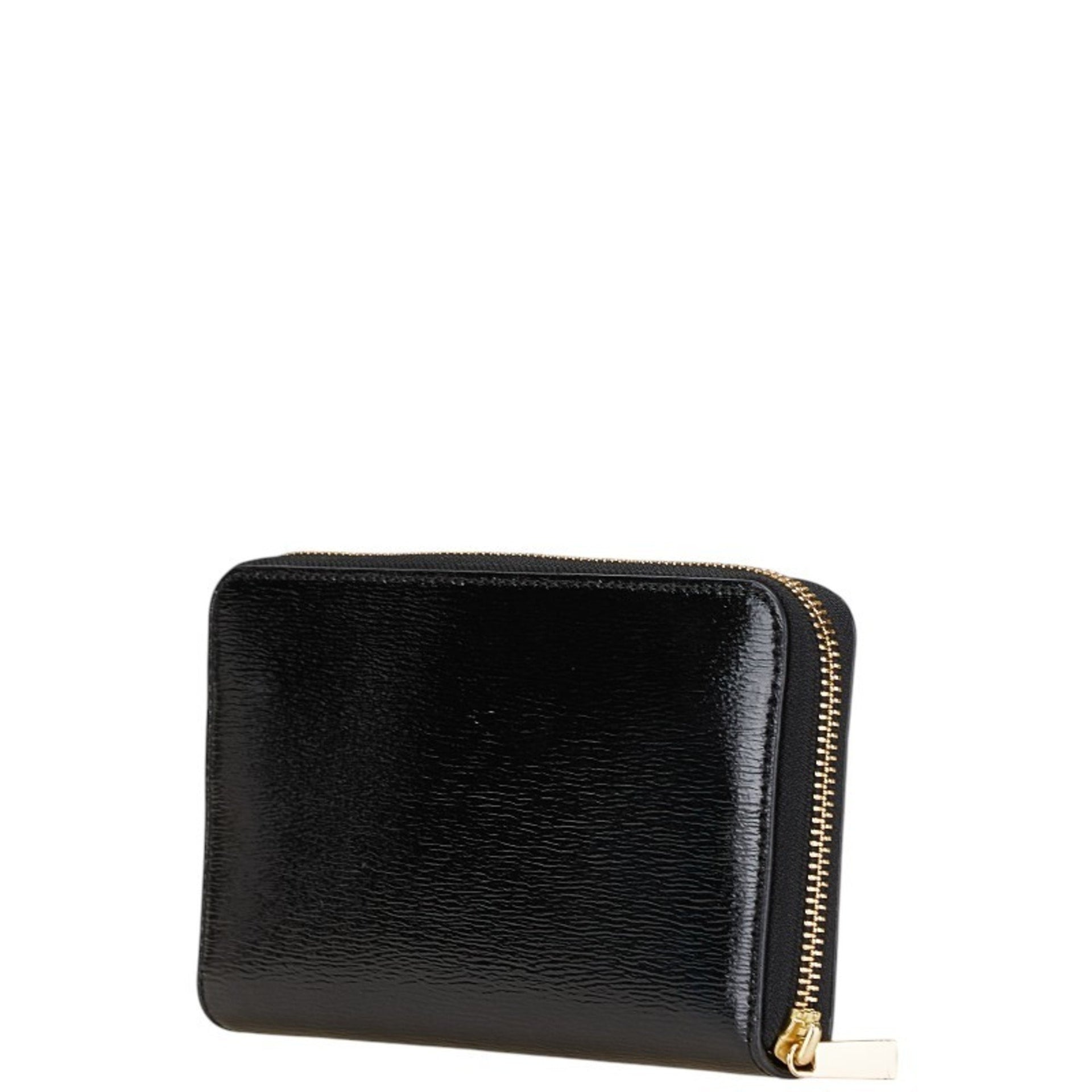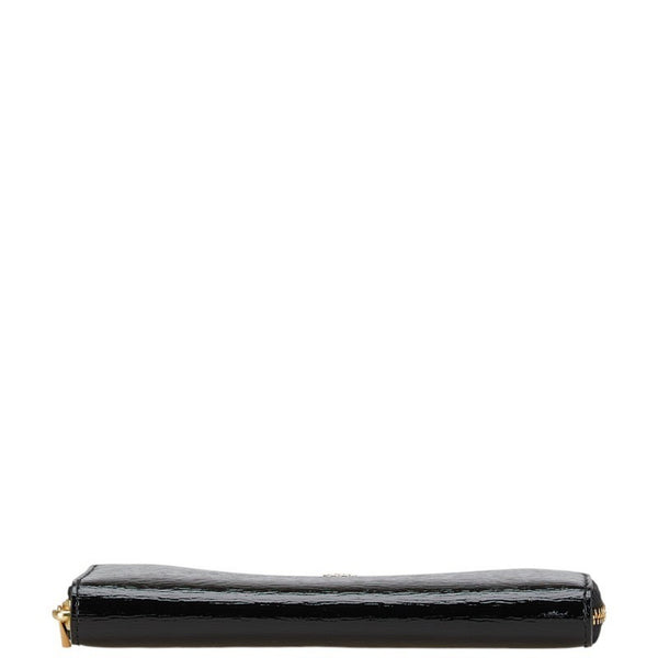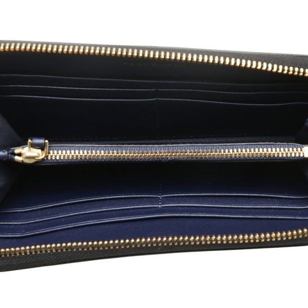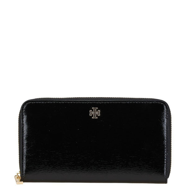 Tory Burch Logo Metal Round Zip Long Wallet Black Enamel Women\'s