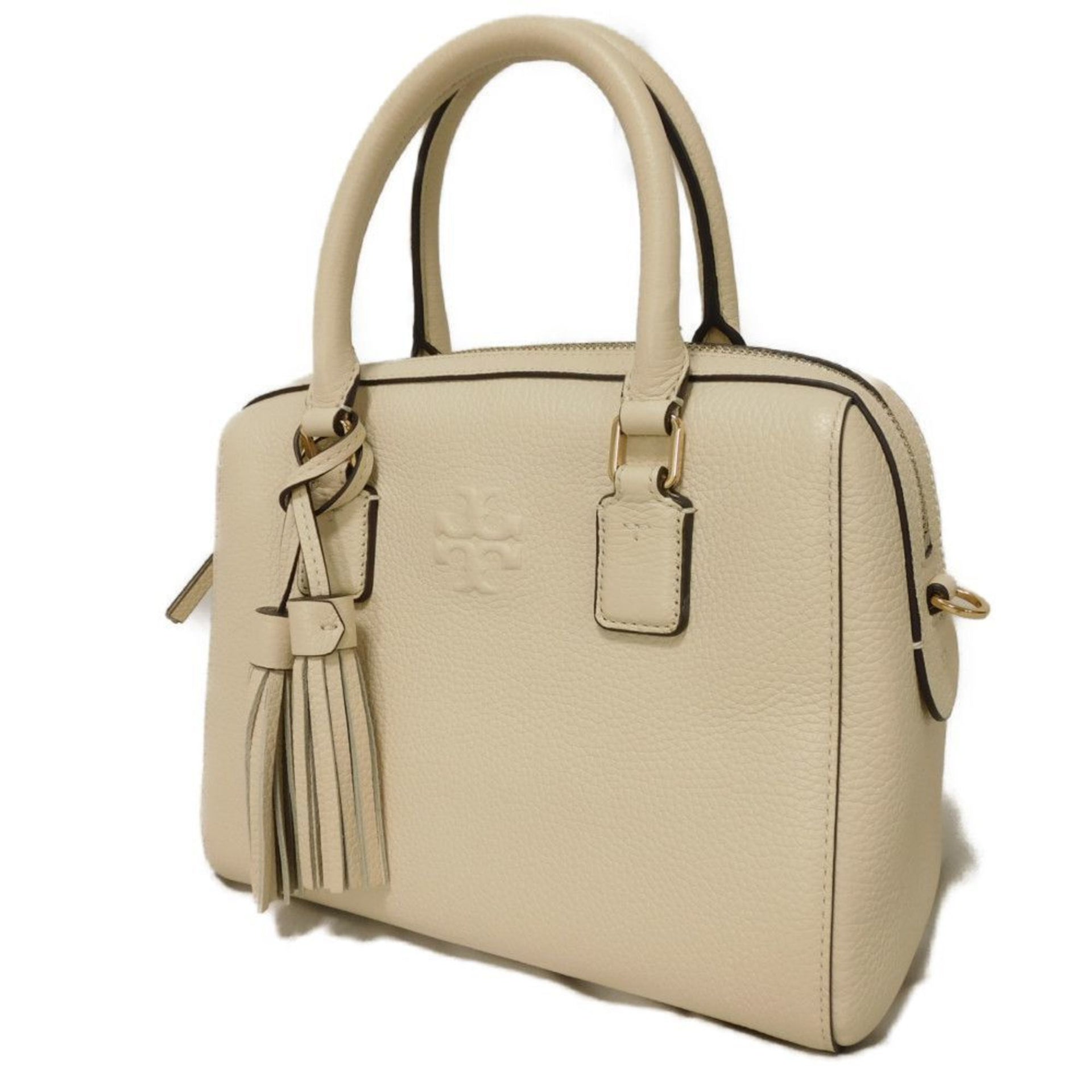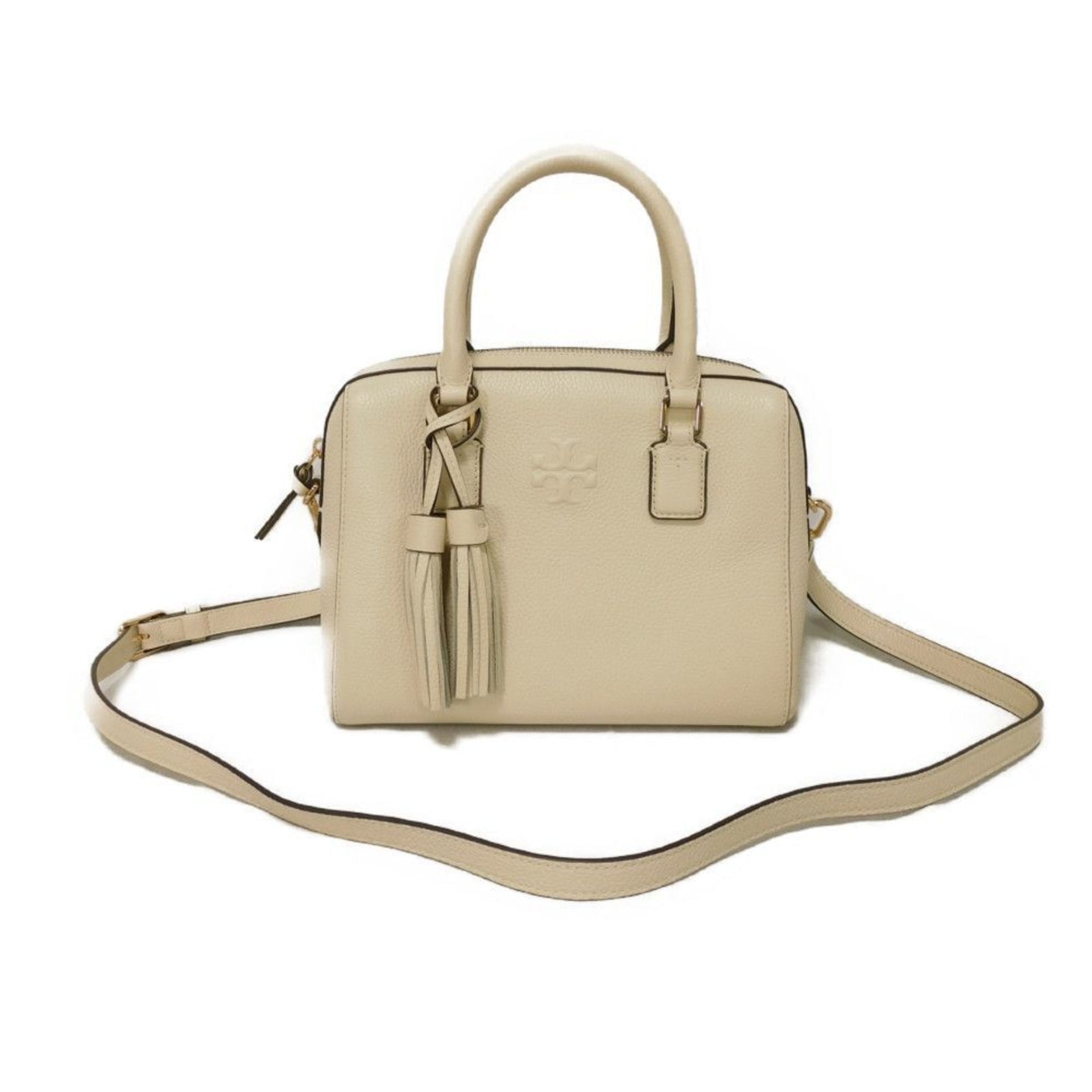 Tory Burch Thea Web Small Satchel Handbag with Calfskin Tassel, 3-Way Shoulder Bag, Double T, Ivory, 84777, Women\'s Bag