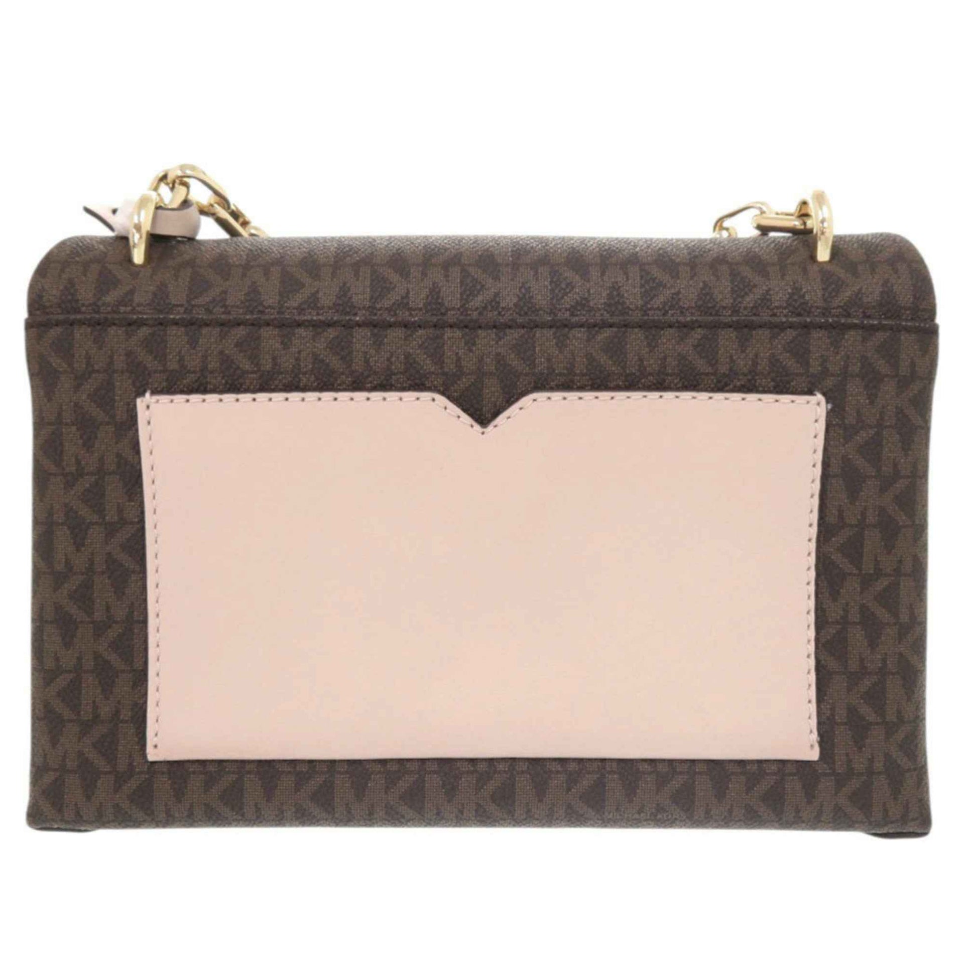 Unused Michael Kors CeCe MK Signature PVC Coated Canvas Brown/Pink 2-Way Shoulder Bag 1478
