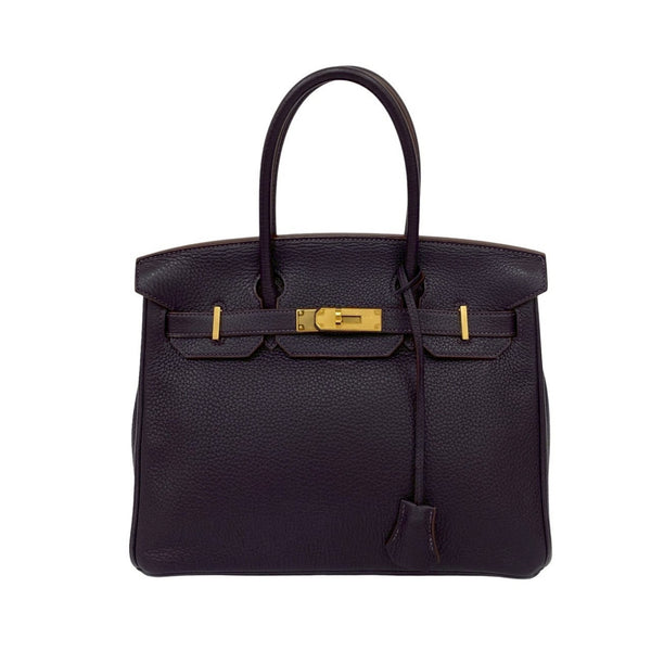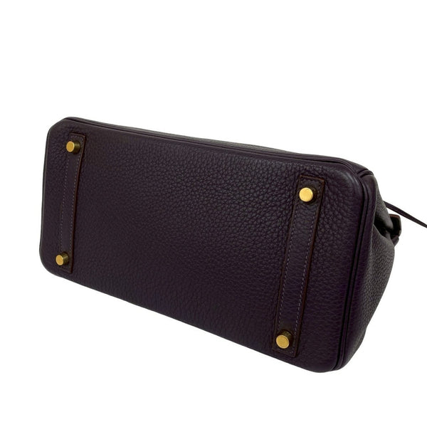 Unused, stored item. □R stamped. HERMES Birkin 30 Taurillon Clemence handbag/tote bag in purple raisin. 72490.