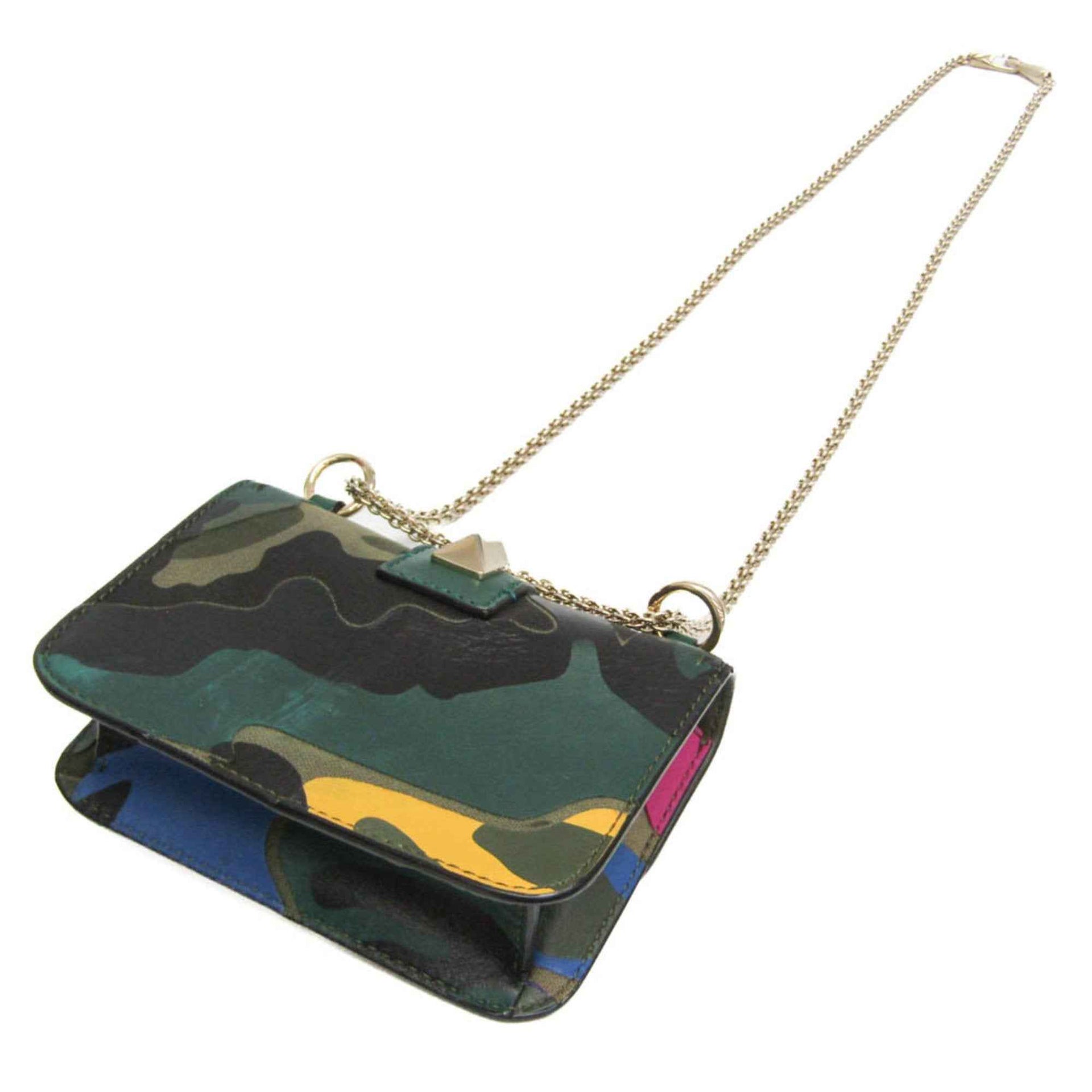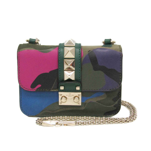 Valentino Garavani Lockstuds Glam Rock Chain Shoulder Bag Women\'s Leather,Canvas Shoulder Bag Blue,Khaki,Pink