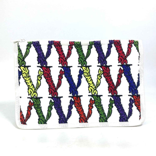 VERSACE Virtus Logo Pouch Clutch Bag, Pile, Women\'s, White