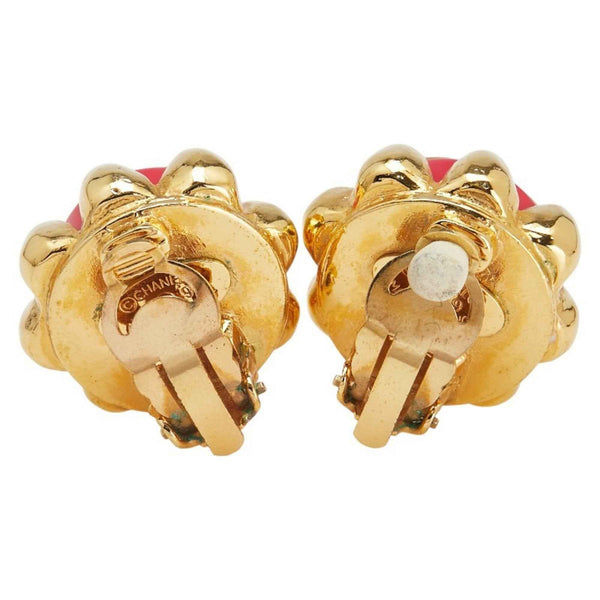 Vintage Chanel Coco Mark Earrings, Gold and Red Plated, Women\'s, CHANEL