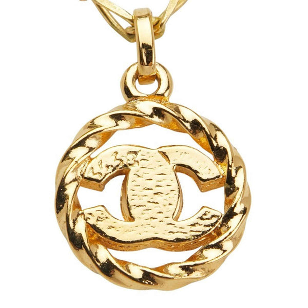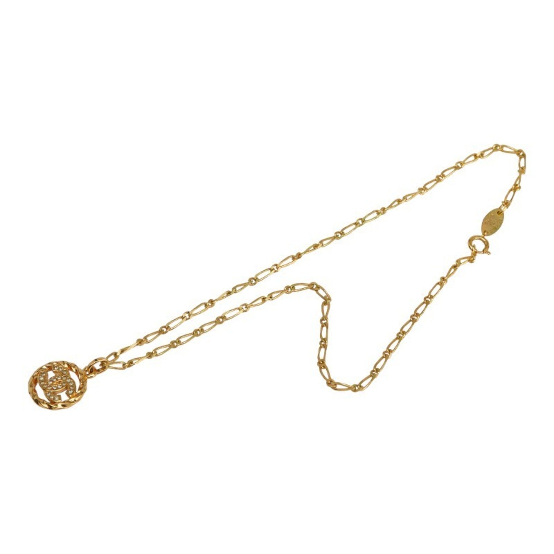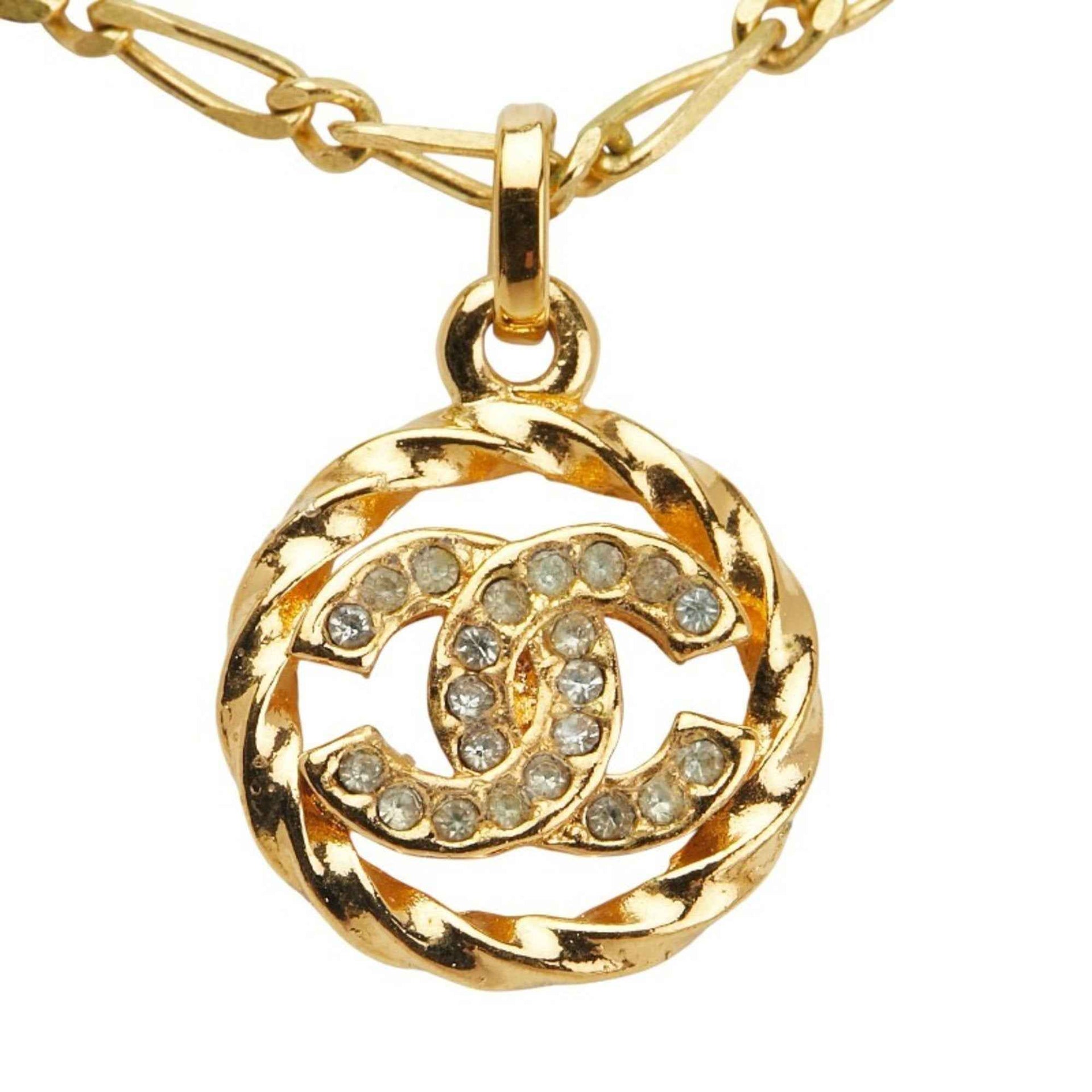 Vintage Chanel Coco Mark Round Circle Necklace with Gold Plated Rhinestones for Women