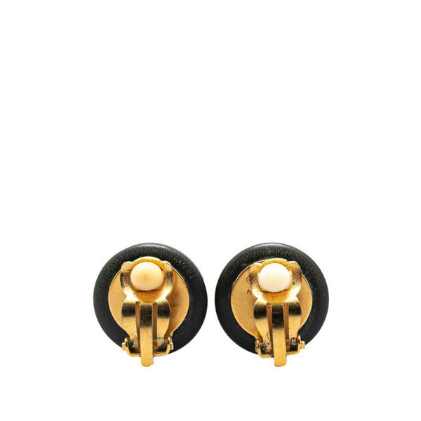 Vintage Chanel Coco Mark Round Earrings in Black and Gold, Plastic with Plated Design, Women\'s