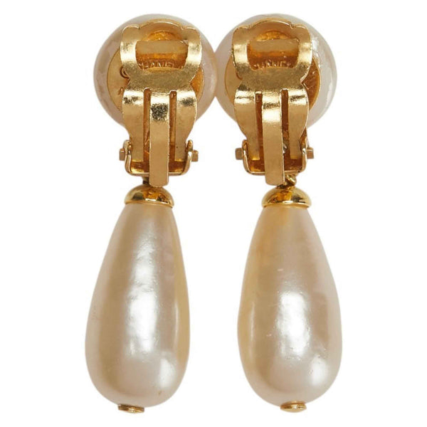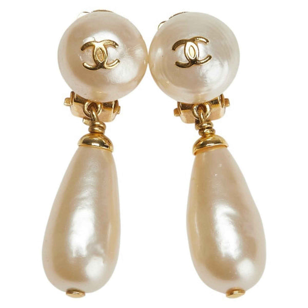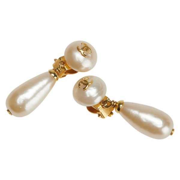 Vintage Chanel Coco Mark Teardrop Motif Swing Earrings, Gold Plated with Faux Pearls, Women\'s