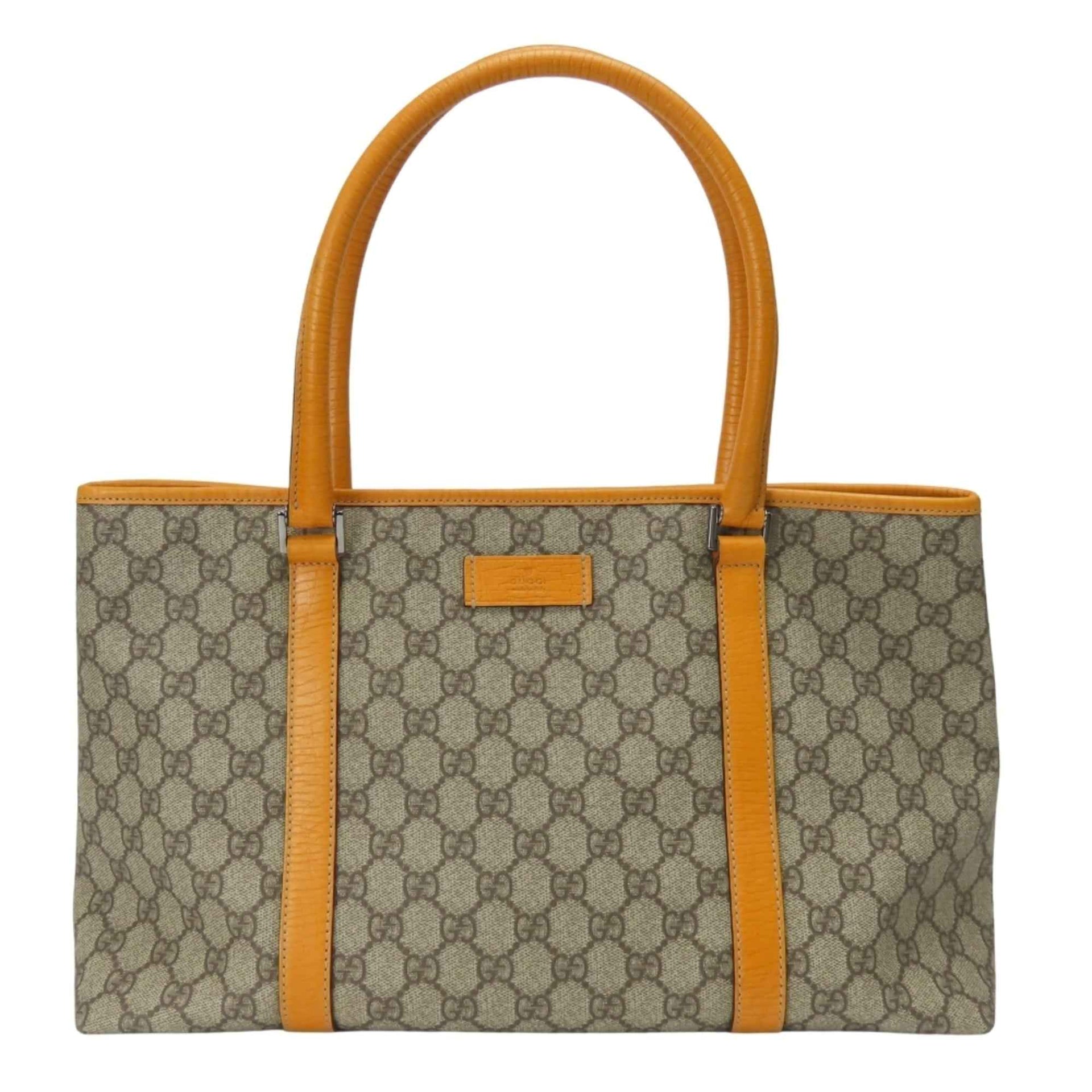 Gucci Tote Tas 114595 GG Supreme Canvas Leer Beige Oranje Dames GUCCI