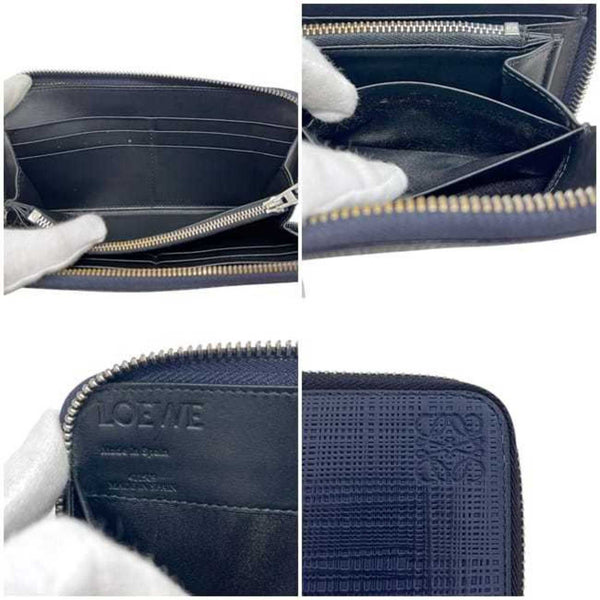Loewe Round Long Wallet ec-25326 Navy Linen Anagram 101N88.F13 Leather 411509 LOEWE Blue Men\'s Women\'s
